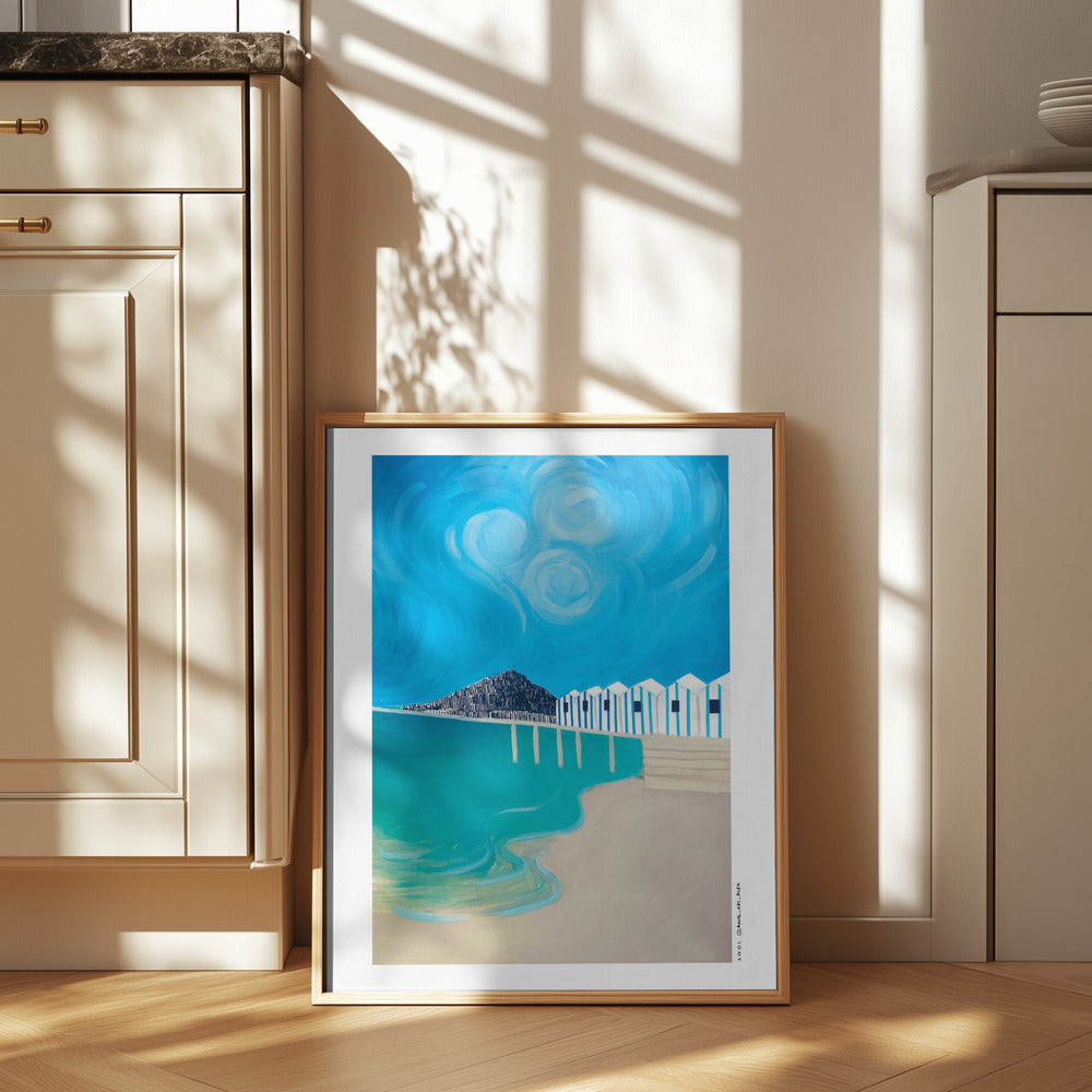 Retro Woman Art Print: Minimalist Sea Landscape, Aluminum Art Print