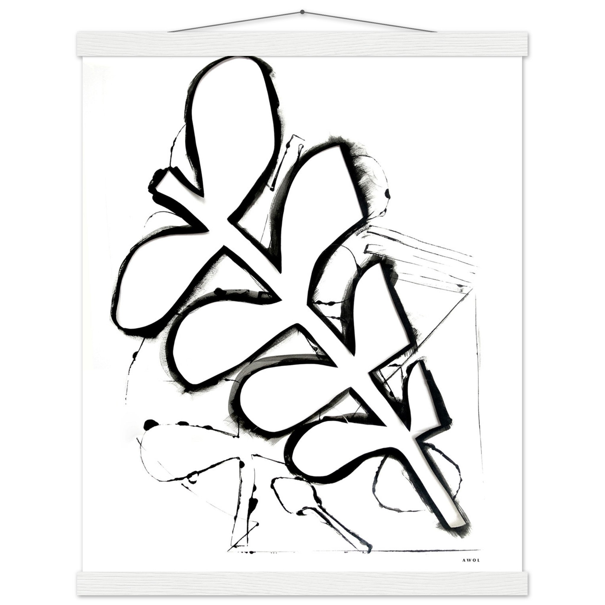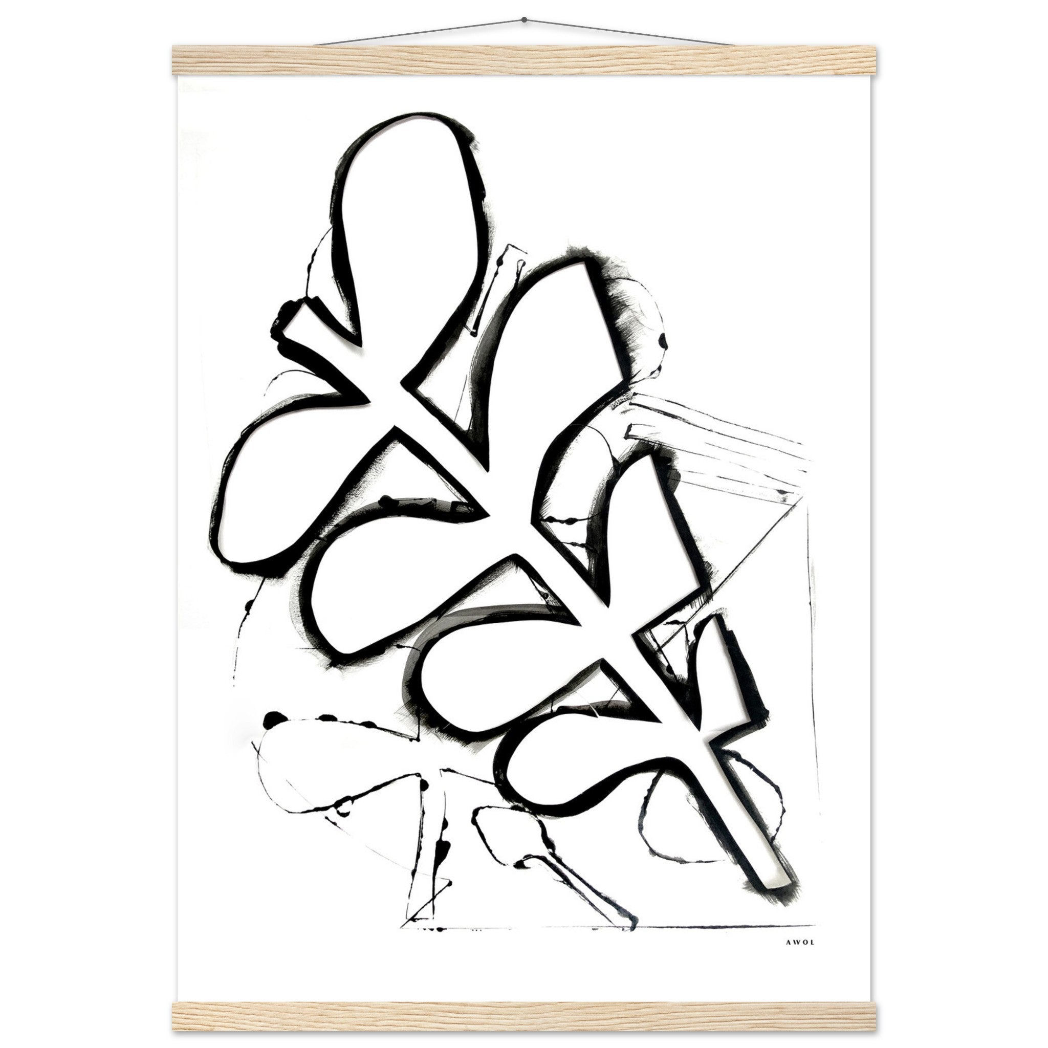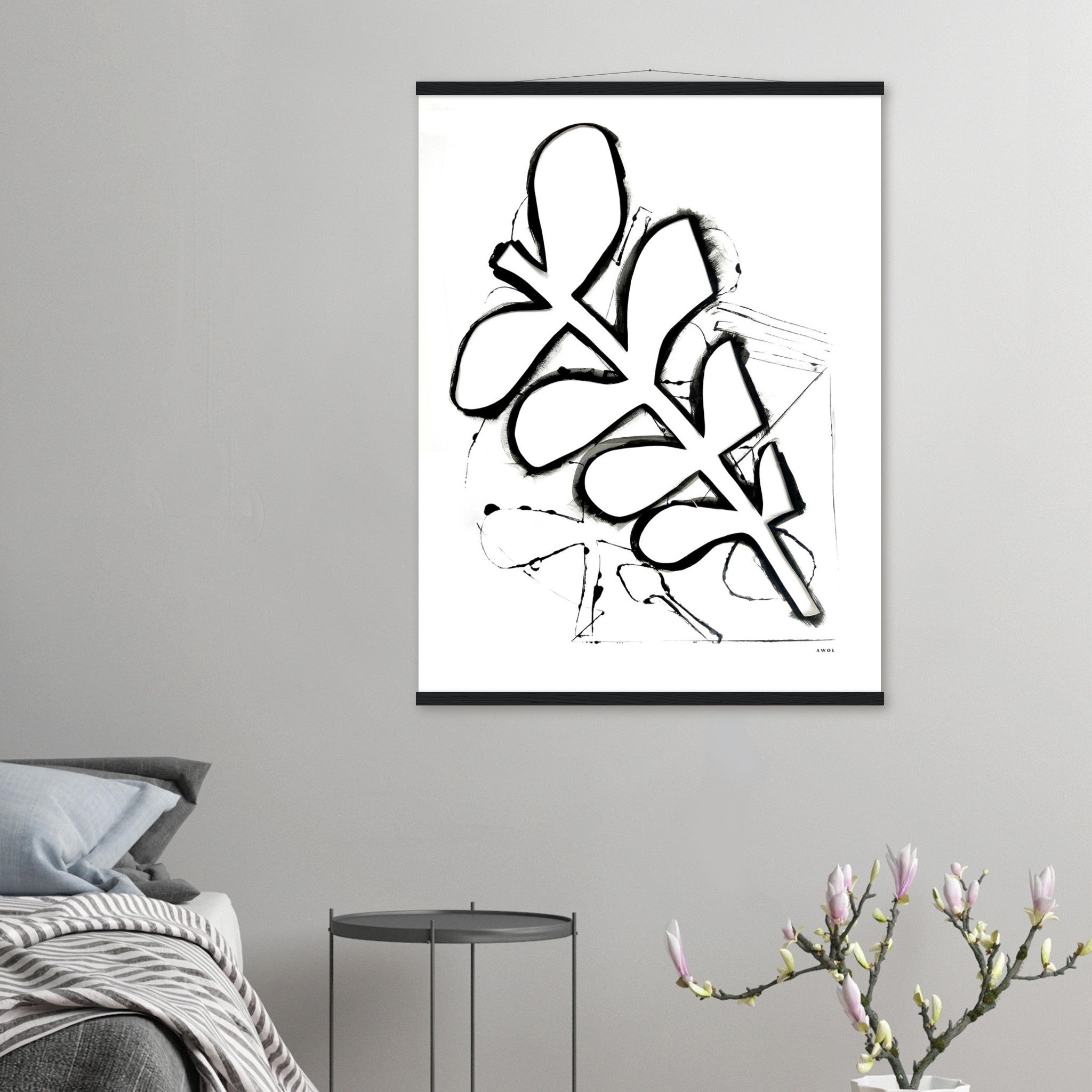 This minimalist abstract plant wall art print is a black and white garden-inspired abstract poster with hanger, inspired by tropical plants, leaves and gardens in Europe’s most beautiful flora zones: the South of France, Italy, Portugal, Spain and other coastal destinations around the Mediterranean sea. This botanical abstraction poster was created using a fine art mix of paint, drawing, collage and paper decoupage techniques, creating a minimalist botanical artwork for plant lovers. This contemporary garden art poster makes a modern plant-inspired decor piece for any room, from your living room, to your bedroom and even a sun room, and it is ready to hang. Combine it with other artworks in this abstract art collection for a 3 piece abstract wall art combination that makes a strong design statement while creating a modern plant-inspired artful decor element to your living or working spaces.
