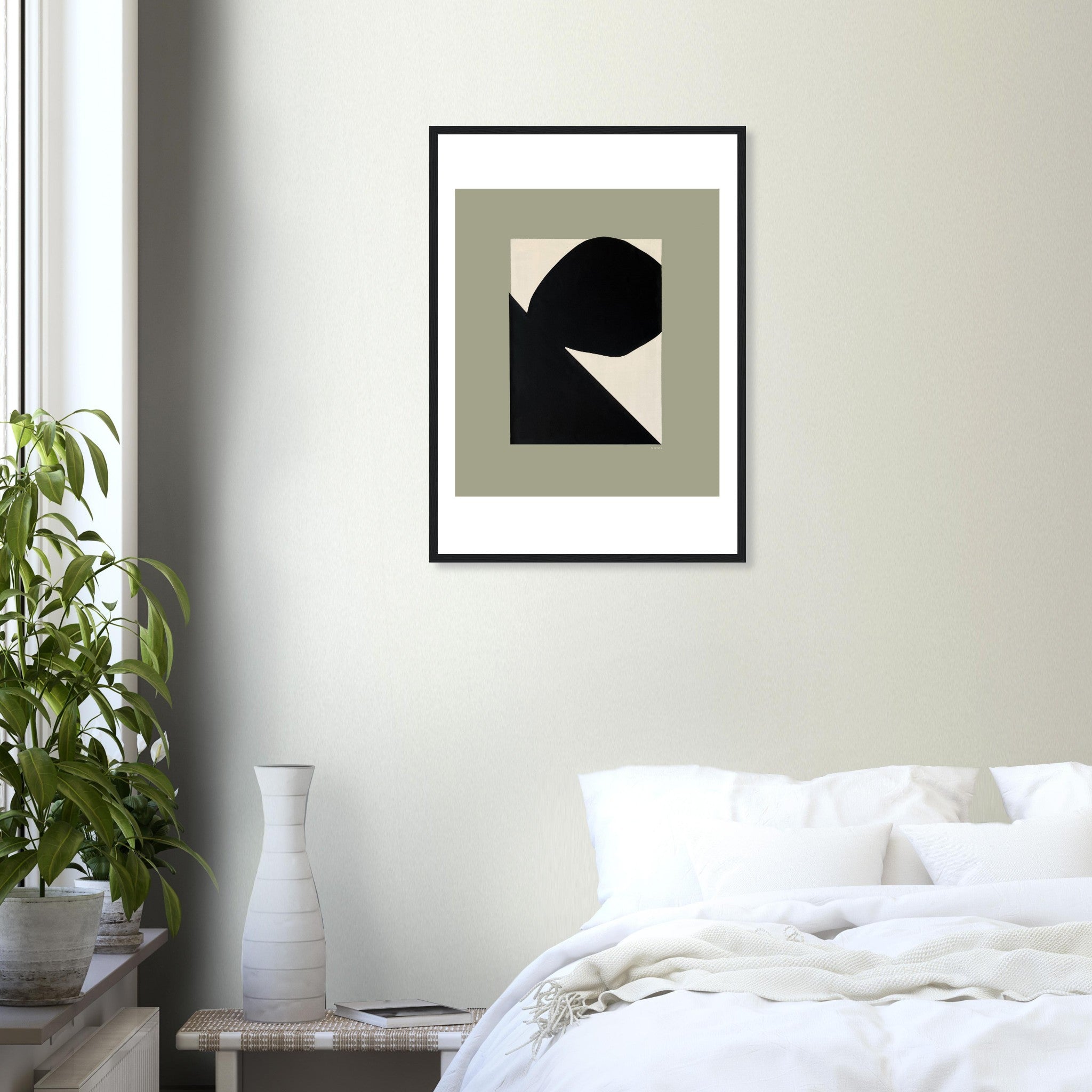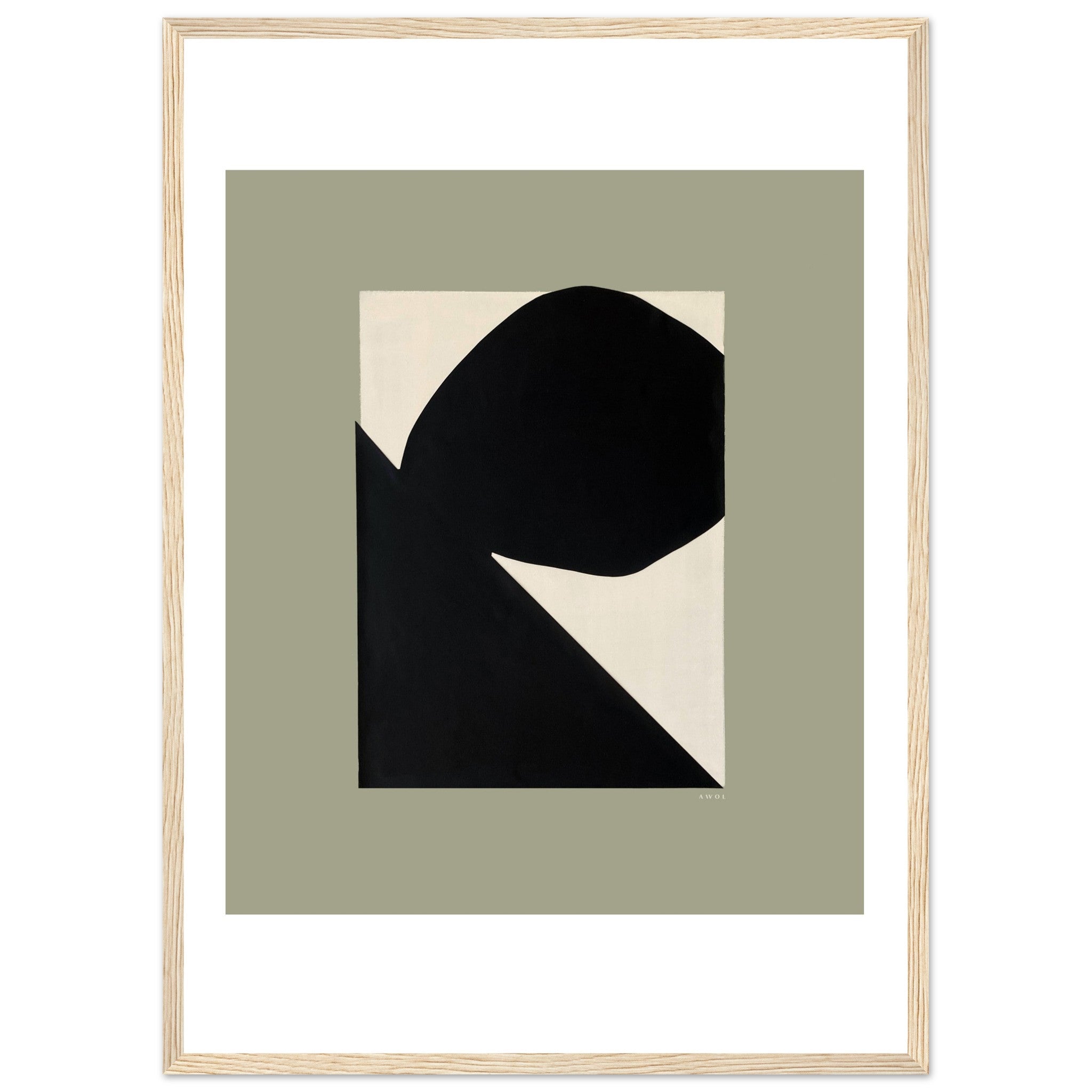 This abstract nature landscape is a framed wall art print created in a minimalist, scandinavian art style. Black abstract shapes are layered on top of a neutral colour palette: olive green, soothing pastels, and warm white tones. This framed abstract wall art was inspired by some of the world’s most beautiful mountain landscapes, views and trails of the artist’s travels and hikes: from Colombia to Colorado, Sicily, Greece, France, Italy and The Canary Islands, the Pyrenees, and Alps to the Mediterranean sea basin, this modern abstract wall art for living room, bedroom, kitchen or hallway makes a focal wall decor statement, conveying the energy of nature’s power: landscapes that have endured since the beginning of time as we know it. This framed abstract wall art print with a natural wooden frame will bring the beauty of nature to your home decor in a modern, contemporary design aesthetic.