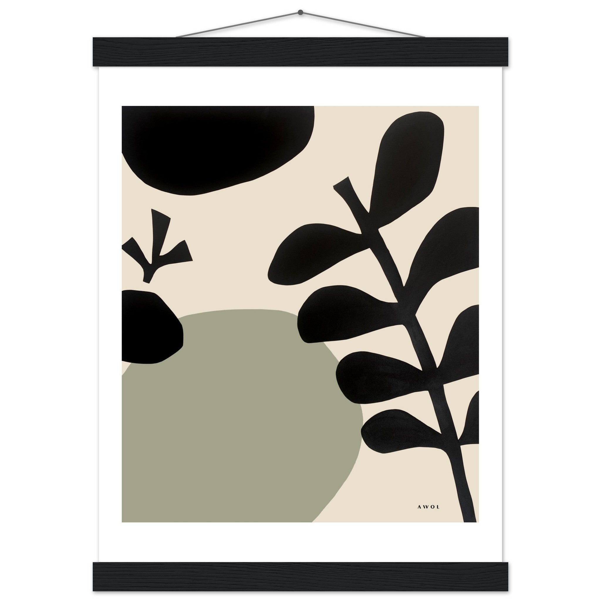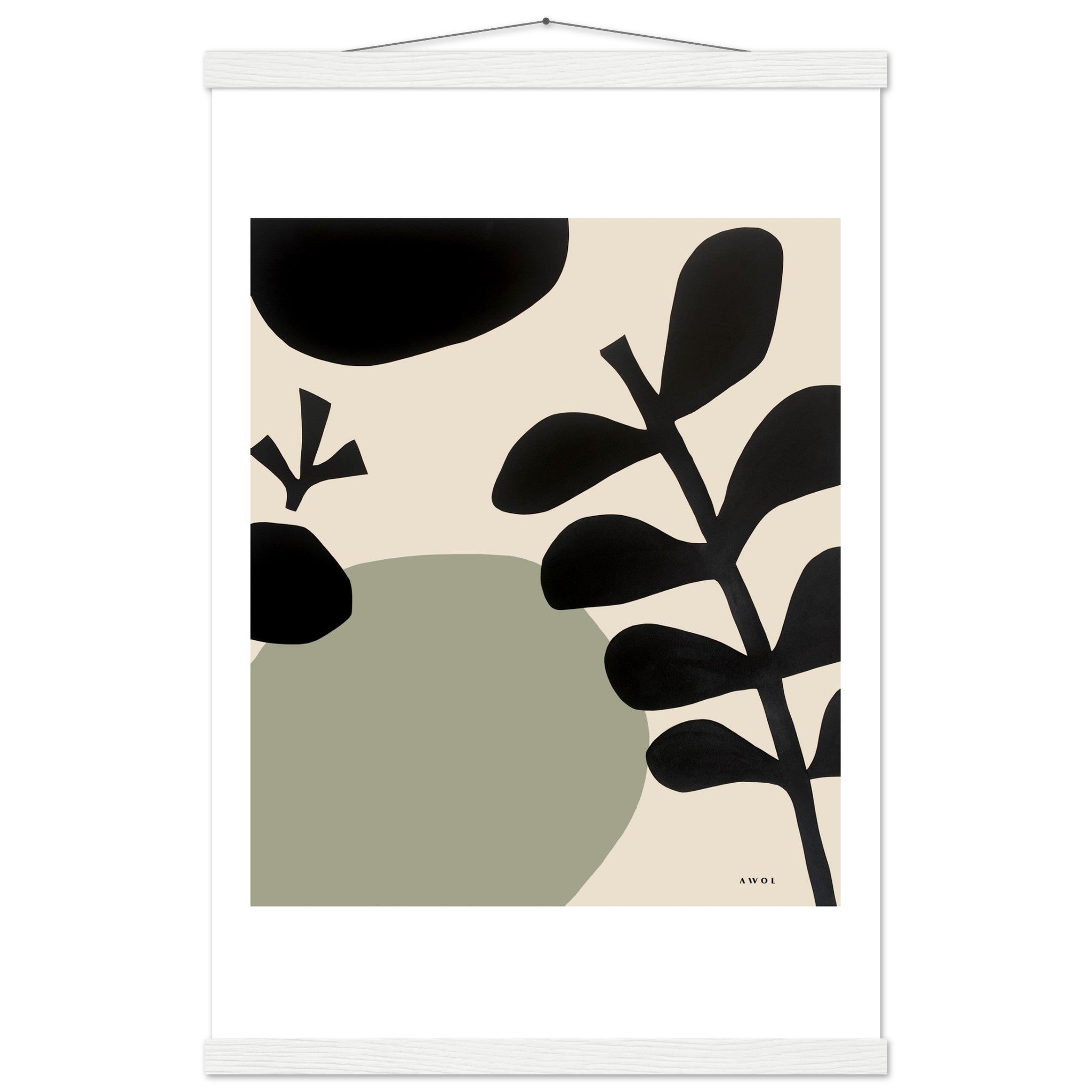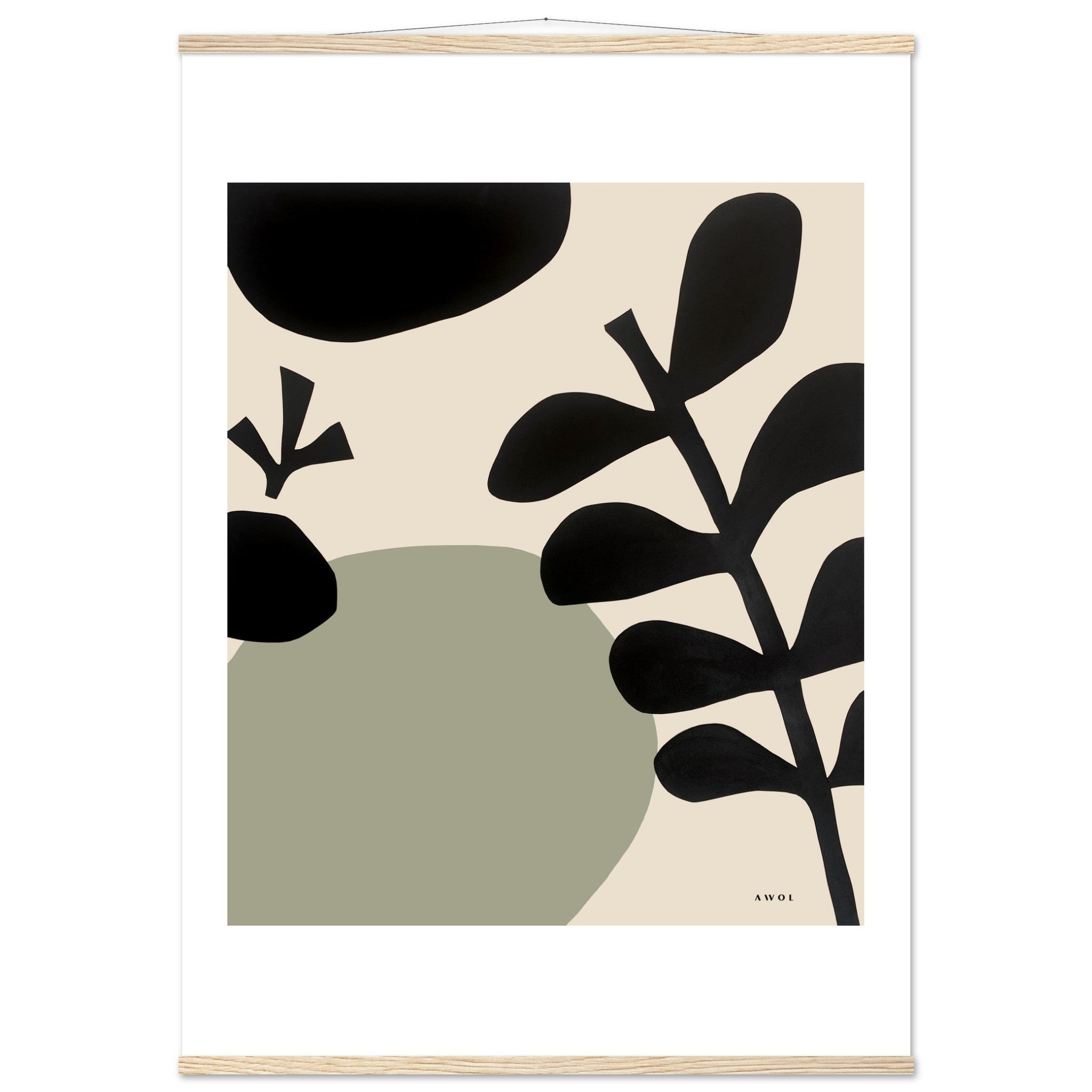 This minimalist plant art print is an abstract botanical poster inspired by Mediterranean veggie gardens and flora. In this beautiful destination, the sun shines all year and grows tropical flowers, vegetables and exotic vegetation. This minimalist nature-inspired artwork juxtaposes a black and white plant with abstract leaves growing next to a tomato, while organic circle shapes evoke the sun, and a grassy garden patch. The neutral pastel colour palette of black, warm white and olive green is soothing and offers a contemporary wall art print to any home decor. This minimalist art print with abstract shapes and leaves brings nature to your wall decor in a modern art style, making a unique wall art statement for for your living room, bedroom, hallways and sun room or kitchen. Combine it with the other plant print in this 2 piece abstract art series for a unique home art gallery, or a thoughtful gift for plant lovers.