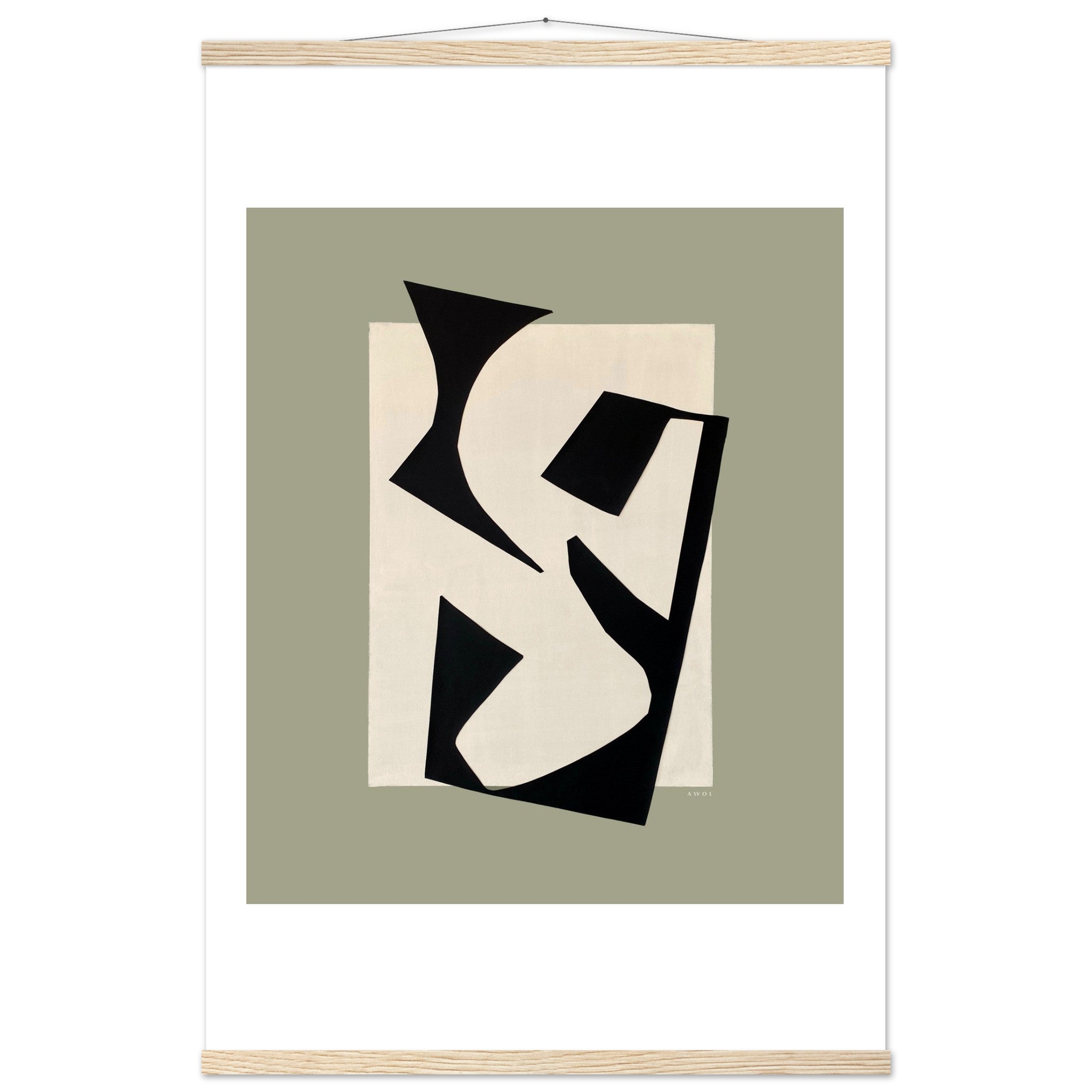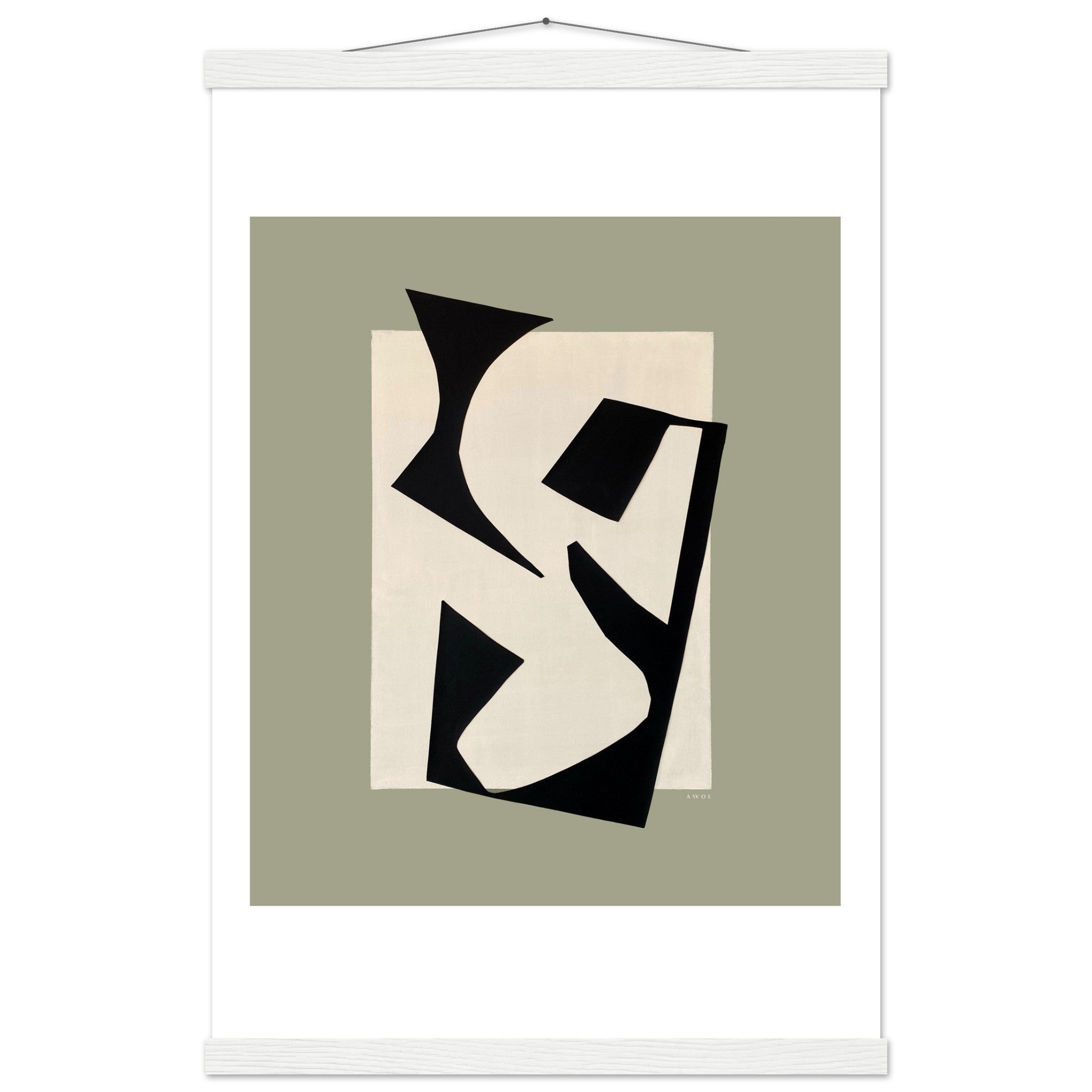 This large abstract wall art with bold black and white shapes collaged on top of olive green and warm earth tones is a nature-inspired poster print, ready to hang, that blends modernity and nature in a minimalist art style. At the heart of this abstract landscape art print lies inspiration drawn from the coastal walks and hikes I encountered on my travel explorations, meandering along seaside cliffs, tracing the rugged coastlines, rock formations and calanques of Marseille, Cassis and the South of France, Italy, Sicily, Corsica and the Mediterranean shorelines. This minimalist wall art reflects the organic shapes and meandering lines of these coastal vistas, where around every corner a new incredible view manifests, mirroring the intricate formations of ancient rocks shaped by the relentless forces of nature. The intricate layers of texture and depth of this abstract poster add a textured art dimension to your wall decor, inviting touch as well as sight. It can be combined with other abstract artworks in this 3 piece nature inspired abstraction series, adding a modern, minimalist art style to your home, office or wall decor.