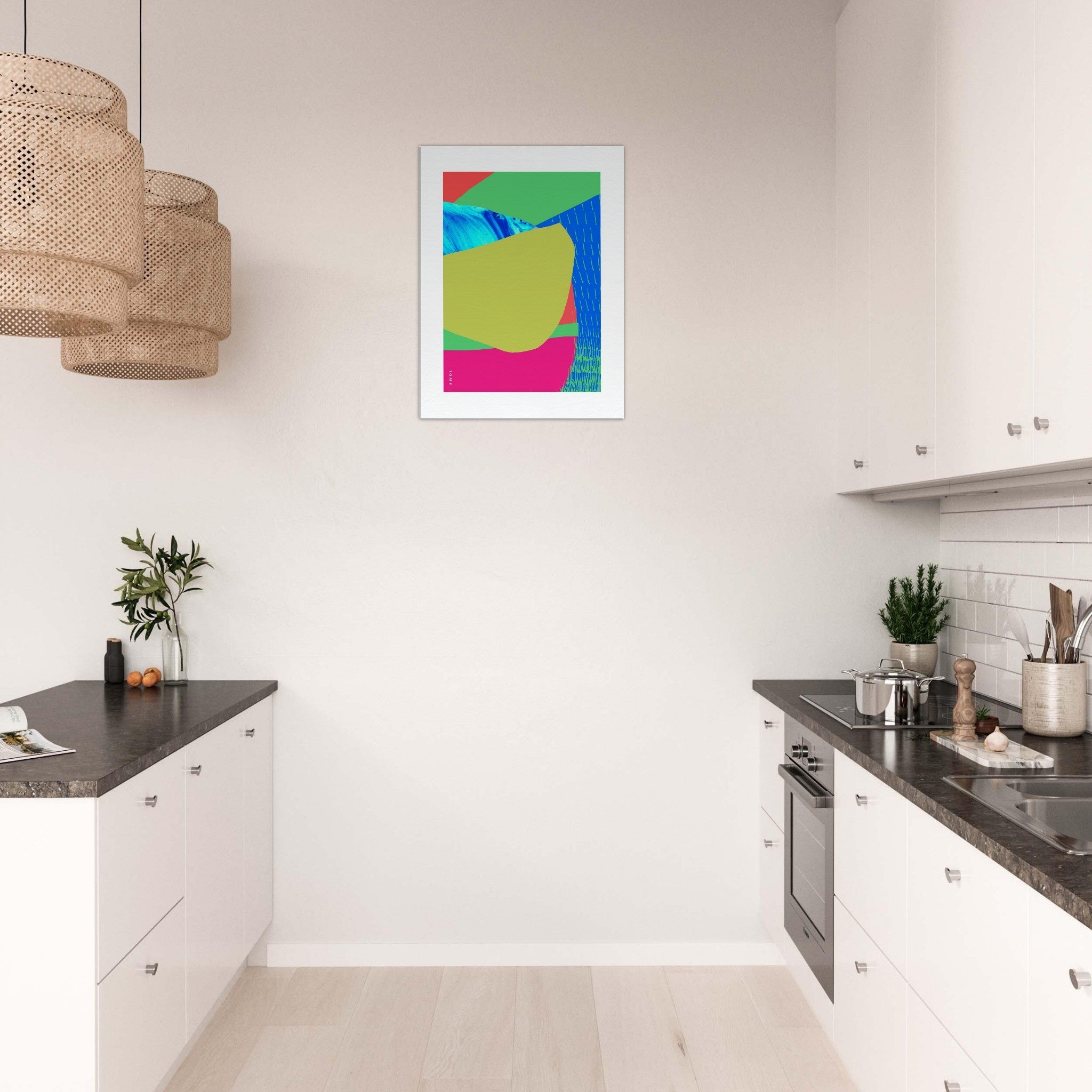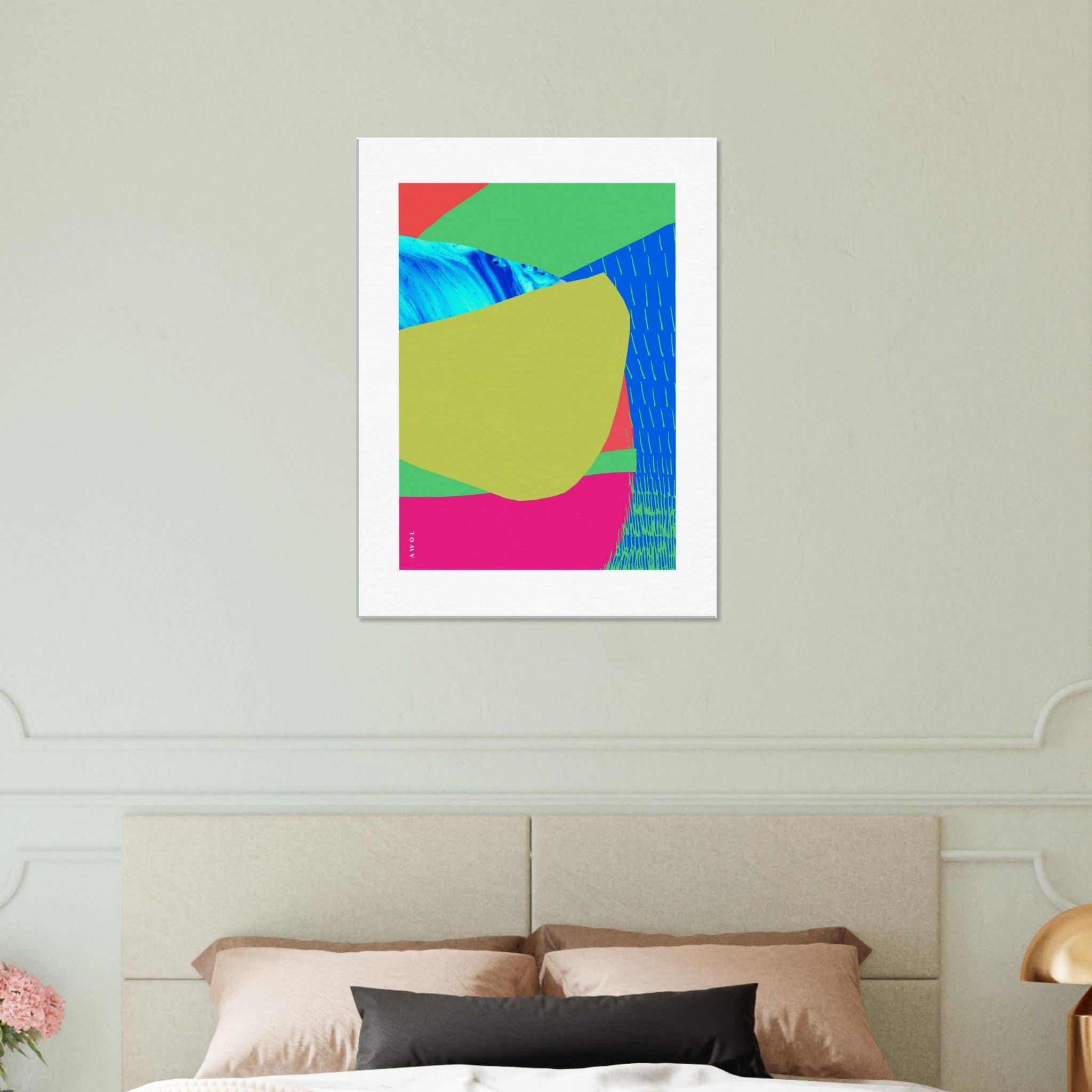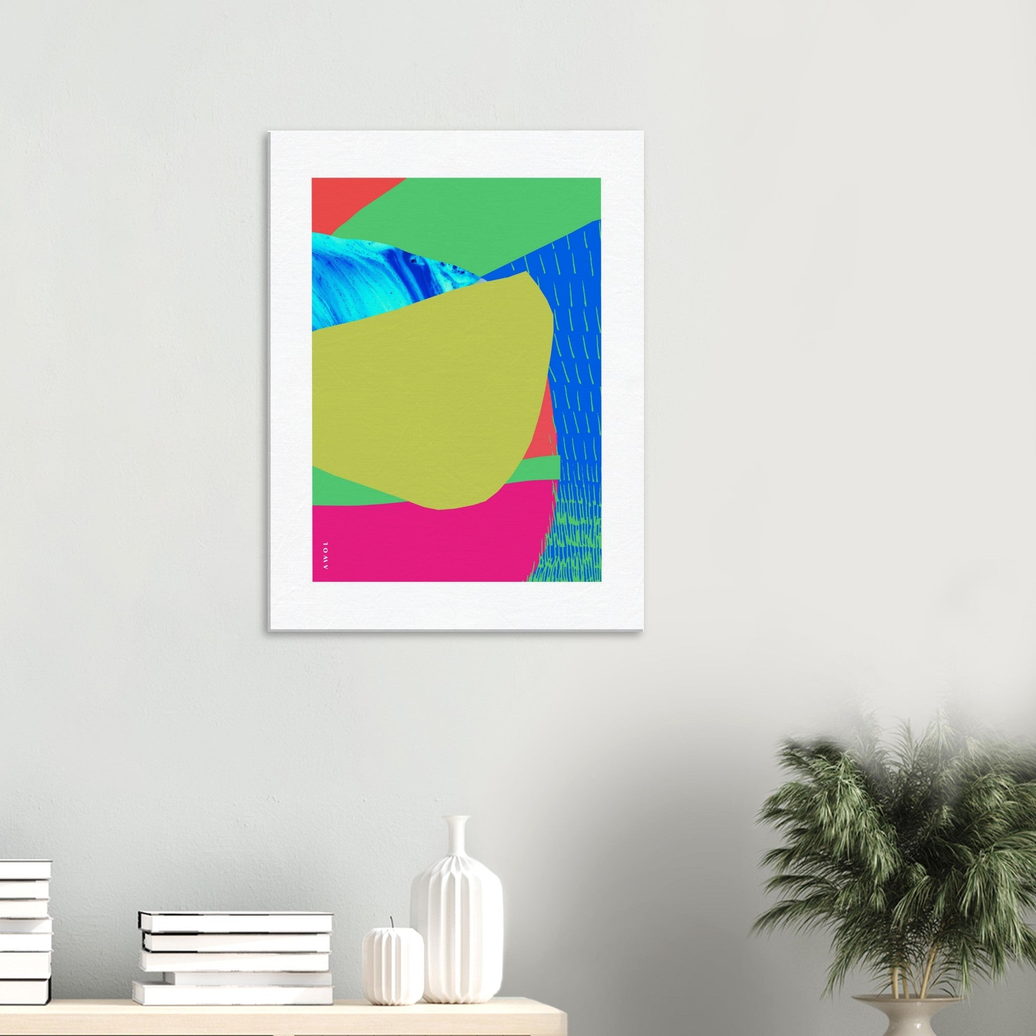 This colourful, abstract canvas wall art print was inspired by travels across Southeast Asia landscapes, in the tropical paradise destinations of Bali, Thailand, India and Vietnam. From the crystal clear turquoise waters, white sandy beaches, waterfalls, blue lagoons, sunshine, exotic flowers and rolling hills, rice fields and tropical jungles, this abstract landscape travel print on canvas is filled with bright happy colours, fluid lines and organic abstract shapes evoking the sensory overload of beauty, sweet fragrances and incredibly beautiful, lush exotic landscapes of the coastlines and tropical islands experienced on these life changing trips to paradise. Turquoise and azure blue colours meet bright pink, vivid greens and warm reds, in a graphic and bold abstract art composition with hand drawn lines evoking rice fields, and painted fluid water abstractions inspired by blue lagoons, majestic waterfalls, rivers and the ever present surrounding ocean waves and calm hidden bays. This exotic, colourful print on canvas is a graphic modern artwork of relaxation, natural beauty, flow and zen experienced while travelling to these incredible seaside destinations. This tropical art print on canvas is ready to hang, and will bring the blissful vacation vibes of Bali, Vietnam and Thailand beach paradises to your wall art decor, allowing you to experience these travel memories again and again from your home decor, and infusing your wall decor with good vibes, sunshine and a happy colourful modern art aesthetic.