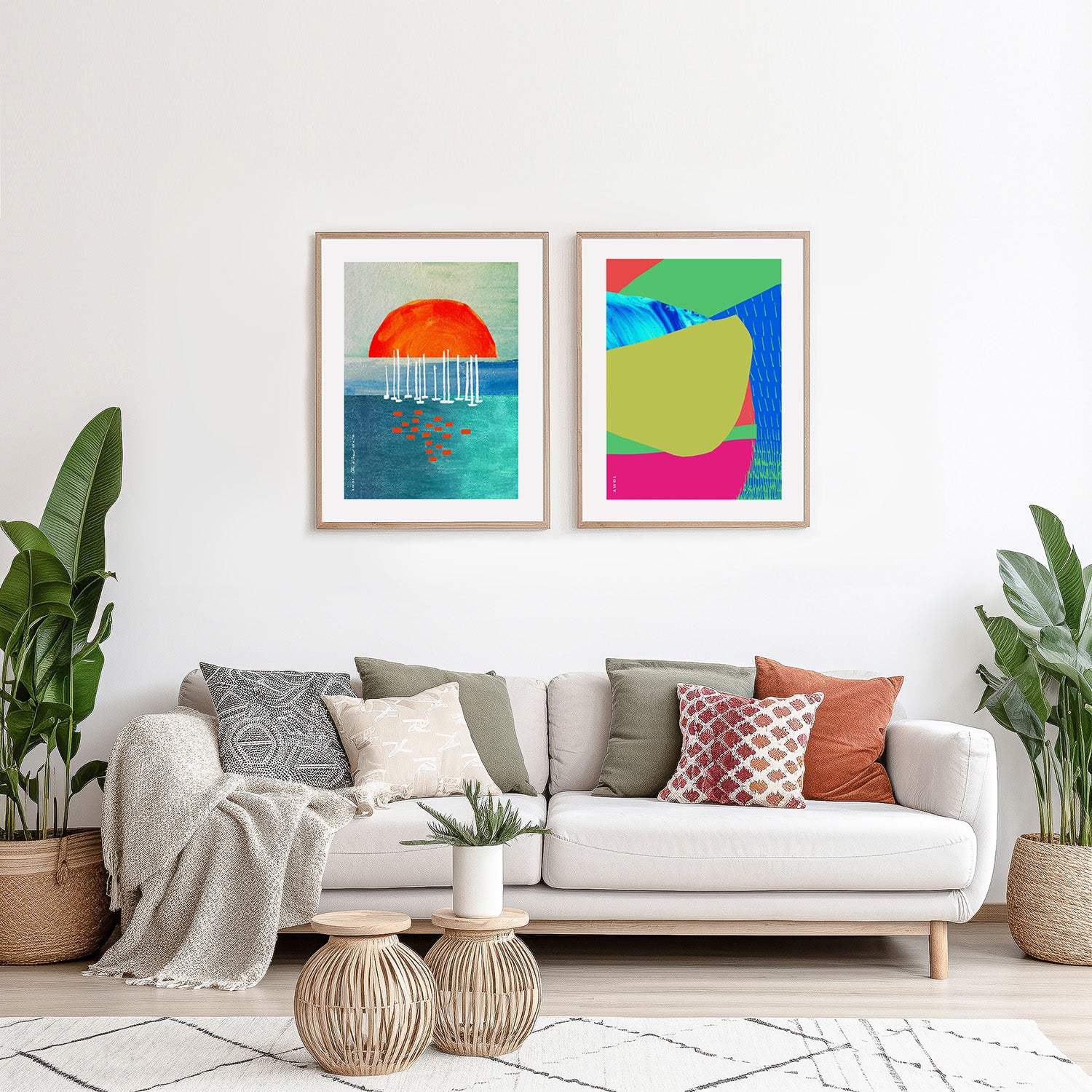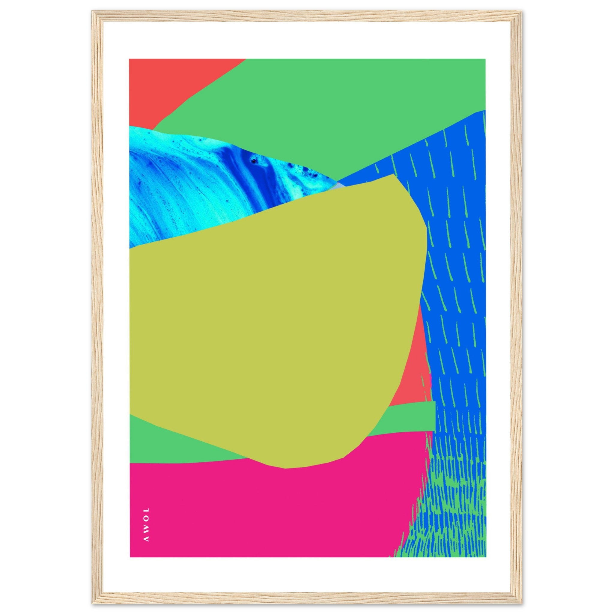 This colourful, abstract travel framed wall art print was inspired by travels across Southeast Asia landscapes, in the tropical paradise destinations of Bali, Thailand, India and Vietnam. From the crystal clear turquoise waters, white sandy beaches, waterfalls, blue lagoons, sunshine, exotic flowers and rolling hills, rice fields and tropical jungles, this abstract landscape artwork with a wooden frame is filled with bright happy colours, fluid lines and organic abstract shapes evoking the sensory overload of beauty, sweet fragrances and incredibly beautiful, lush exotic landscapes of the coastlines and tropical islands experienced on these life changing trips to paradise. Turquoise and azure blue colours meet bright pink, vivid greens and warm reds, in a graphic and bold abstract art composition with hand drawn lines evoking rice fields, and painted fluid water abstractions inspired by blue lagoons, majestic waterfalls, rivers and the ever present surrounding ocean waves and calm hidden bays. This exotic, abstract framed art print is a colourful and graphic modern artwork of the feeling of freedom, relaxation and zen experienced while travelling to these incredible seaside destinations. This tropical art print will bring the blissful vacation vibes of Bali, Vietnam and Thailand beach paradises to your wall art decor, allowing you to experience these travel memories again and again from your home decor, and infusing your wall decor with good vibes, sunshine and a happy colourful modern art aesthetic.