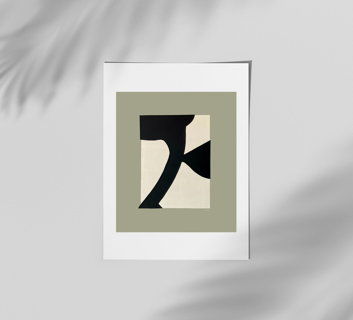 This contemporary flower art print is an abstract plant poster that is ready to hang. This plant poster print was inspired by Mediterranean gardens, tropical plants, and beautiful exotic vegetation. This abstract artwork with an oversized minimalist flower is a nature-inspired wall decor art work juxtaposing an abstract flower and leaf with a modern aesthetic and a bold, high contrast yet soothing colour palette of black, warm white and olive green. This minimalist wall art decor makes a modern biophilia focal point to any room decor, bringing outdoor gardens to your home or office decor. This modern flower poster brings nature to your wall decor in a minimalist design style, making a unique art statement piece for for your office space or home: living room, bedroom, hallways, sun room or kitchen. Combine it with the other abstract wall art prints in this 3 piece art series for a unique home art gallery wall, or gift this garden art print to people who love plants.