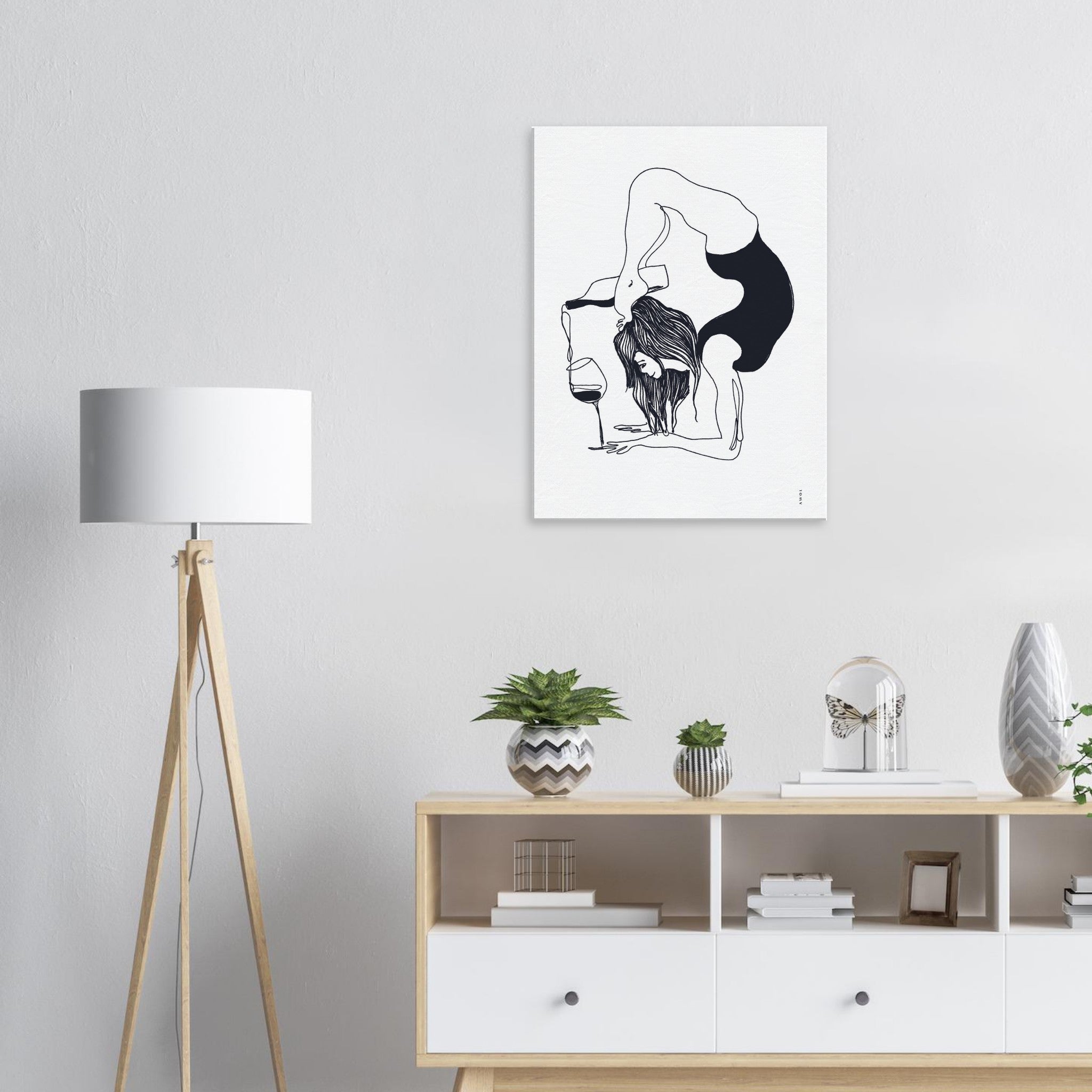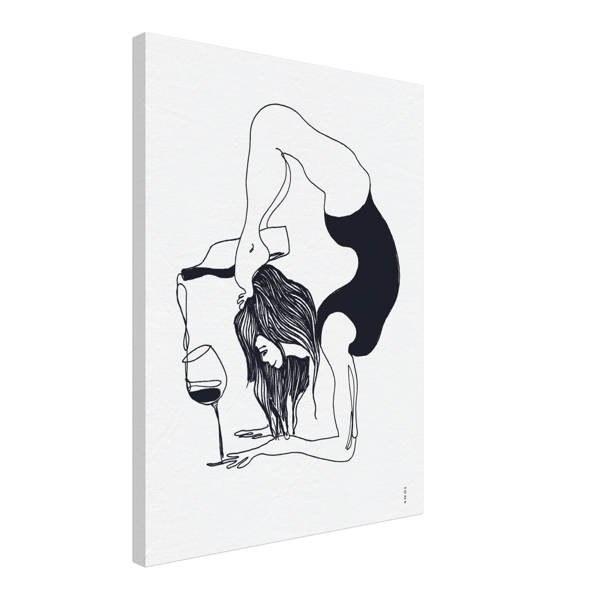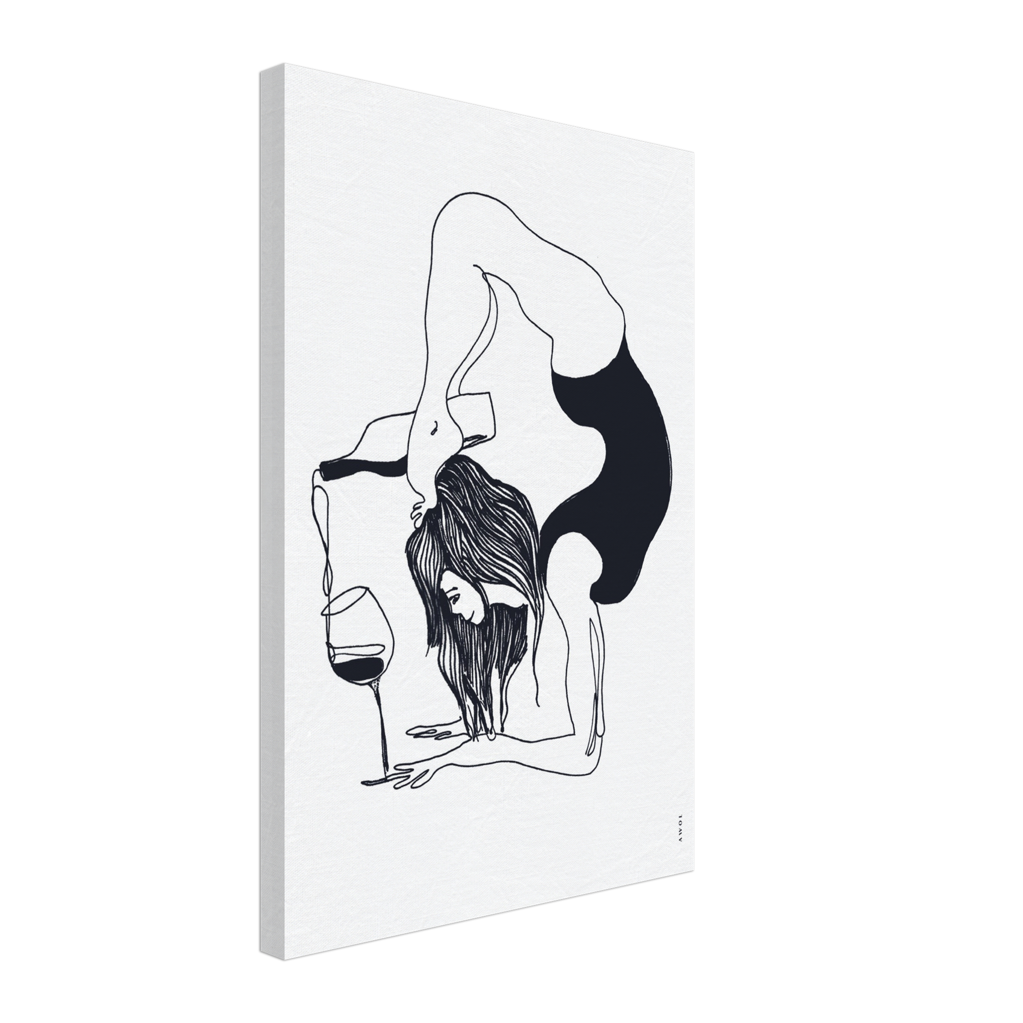 This black and white yoga, minimalist wall art on canvas blends humour, wine and yoga in monochrome and fun ready to hang yoga art print. A woman in a yoga pose pours a bottle of wine into a glass, her focus unwavering. The juxtaposition of the ancient art of yoga with the modern indulgence of wine creates a delightful paradox, reminding us that life is indeed all about balance. Rendered in a modern, black and white minimalist style, this modern yoga artwork on canvas is sure to bring a smile to your face as it adorns your wall decor – whether you’re looking for black and white canvas art for your yoga studio, meditation space or for your living room or bedroom. This yoga illustration, born out of personal exploration and spiritual growth, captures the essence of a journey that encompassed meditation, wellness, and yoga. It’s more than just wall art — it’s an exploration into the art of yoga, the importance of mental health awareness and a positive attitude. It’s a reminder to find balance and positivity in the chaos of everyday life, and to always keep a sense of humour, in life and in your yoga practice.