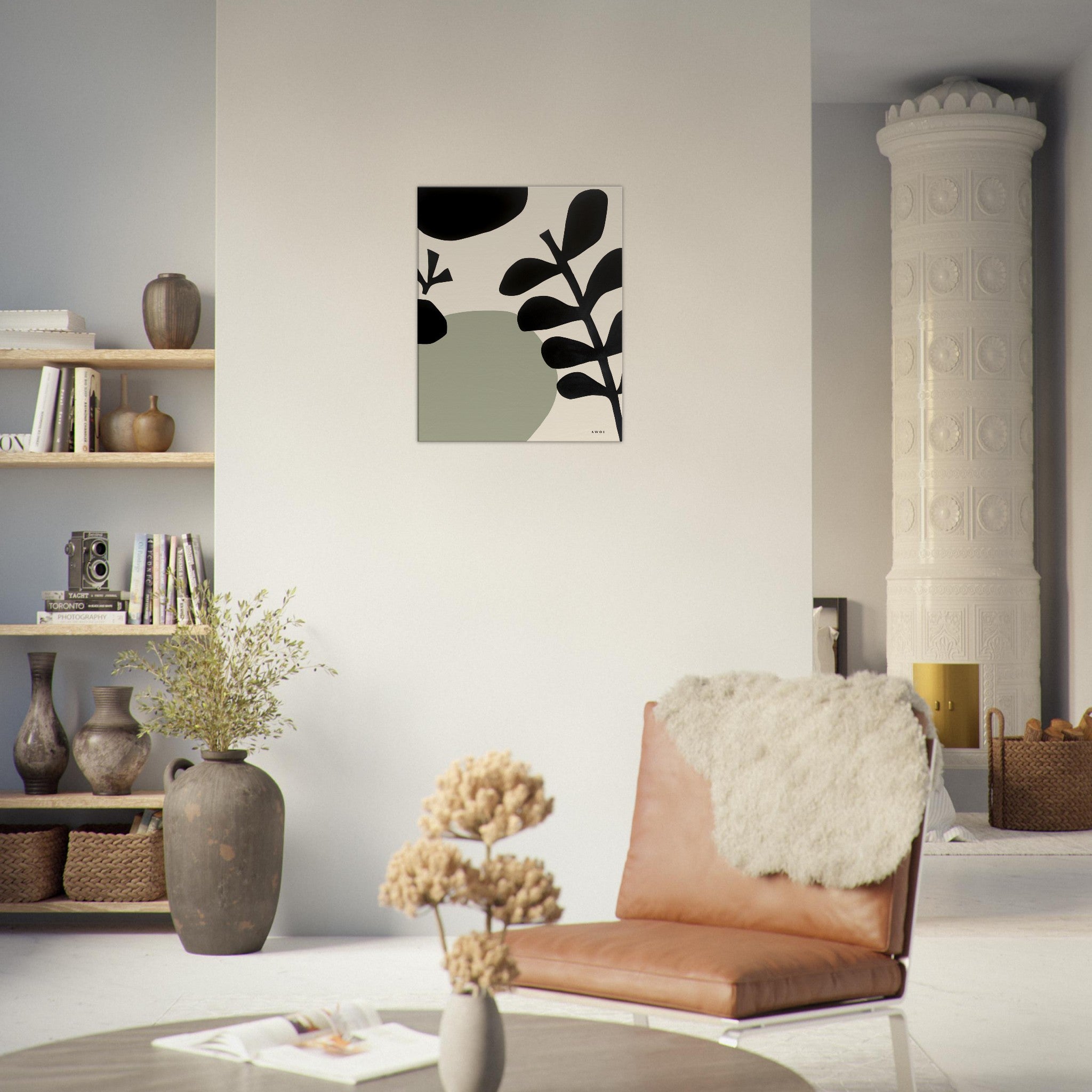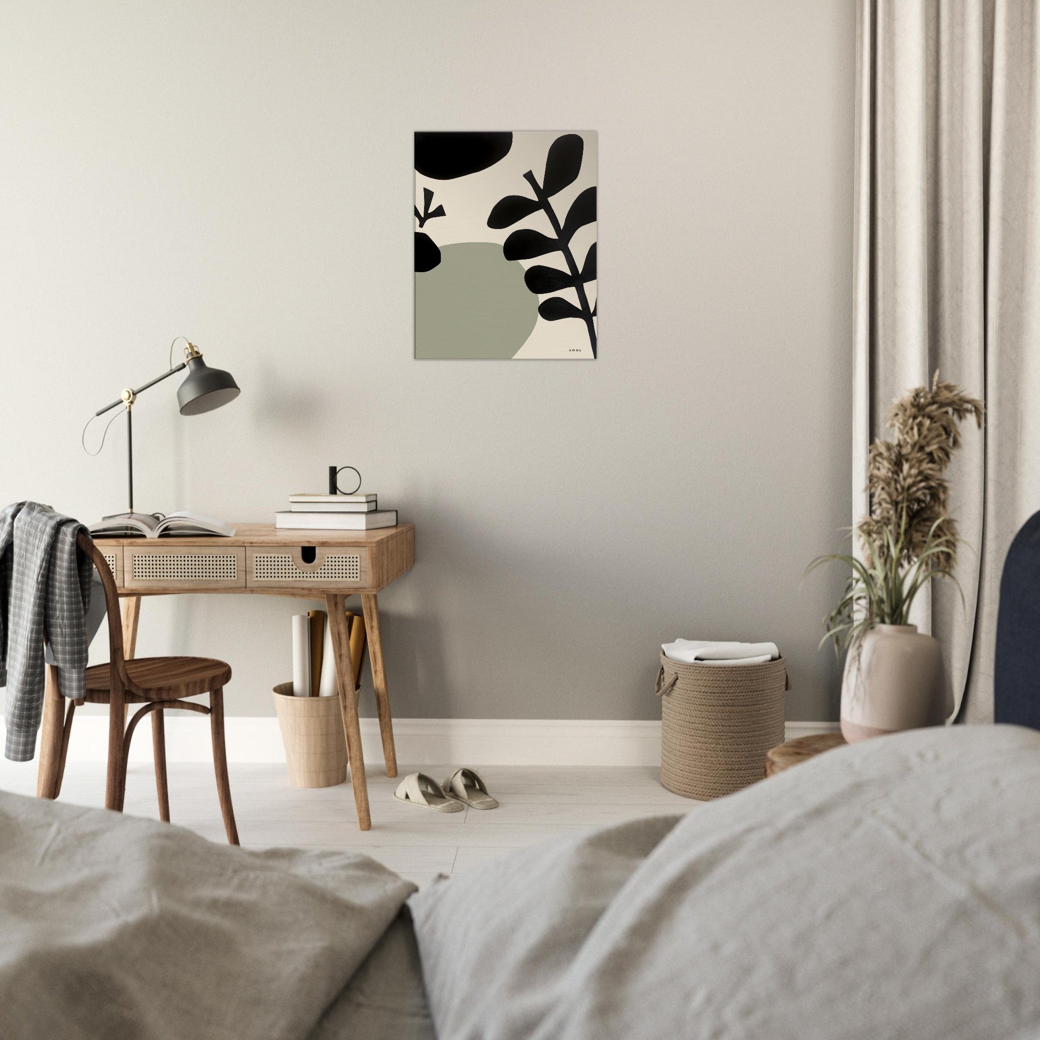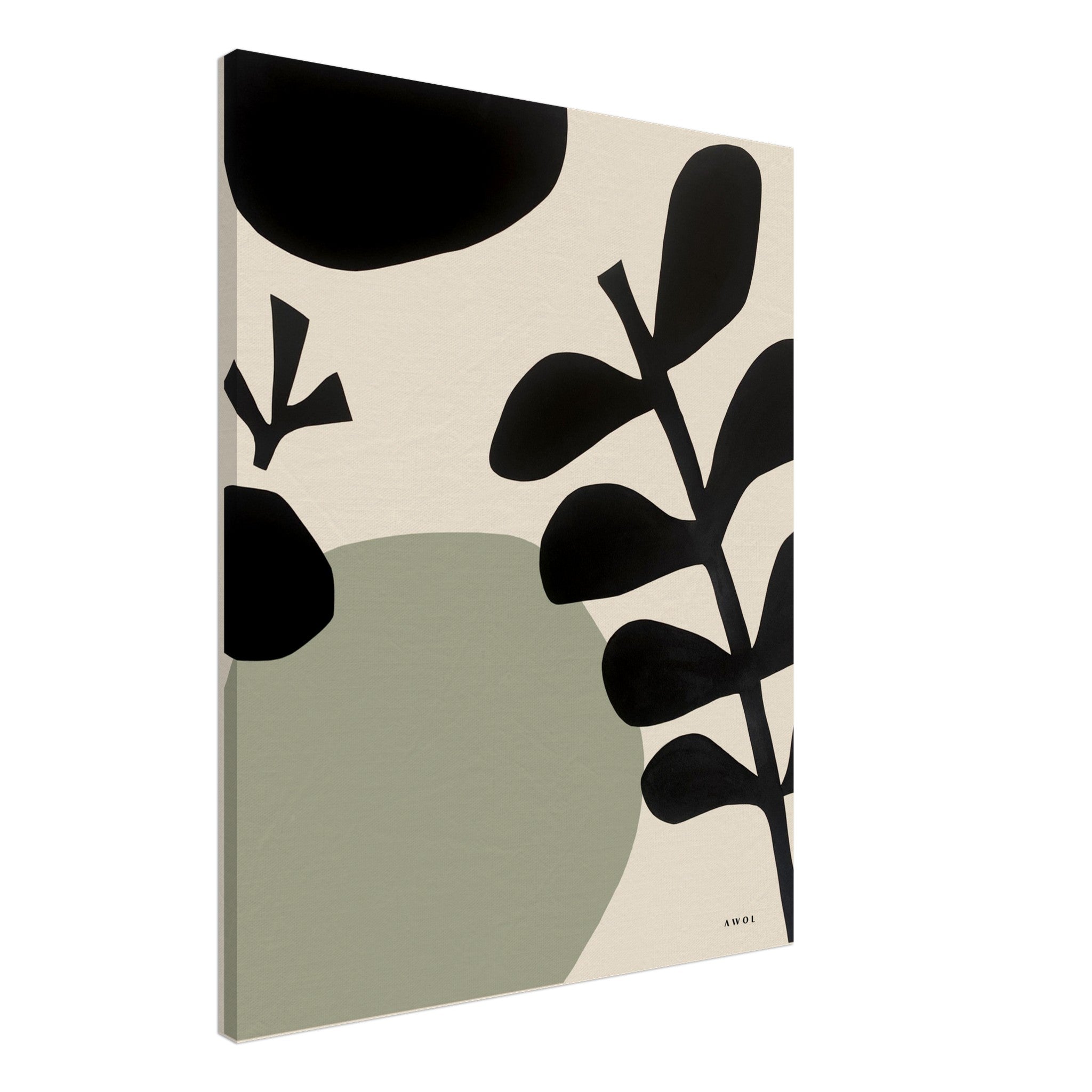 This botanical art print is an abstract canvas wall art inspired by gardens and plants in the lush Mediterranean basin, where the sun shines bright all year and the flora grows beautiful flowers, leaves, gardens, and delicious food, all year round. This modern botanical art on canvas print juxtaposes a tropical abstract plant growing next to a tomato, while organic circle shapes evoke the sun above, and a grassy garden patch below. This nature-inspired, garden abstraction is is a minimalist wall art print on canvas that brings nature to your wall decor in a contemporary style. The black, white, olive green and beige colour palette complements any style of room decor, making a unique statement for for your living room, bedroom, hallways and sun room. Combine it with other large canvas artworks in this 3 piece art series for a unique wall decor accent, or gift this botanical artwork to your plant lover friends.
