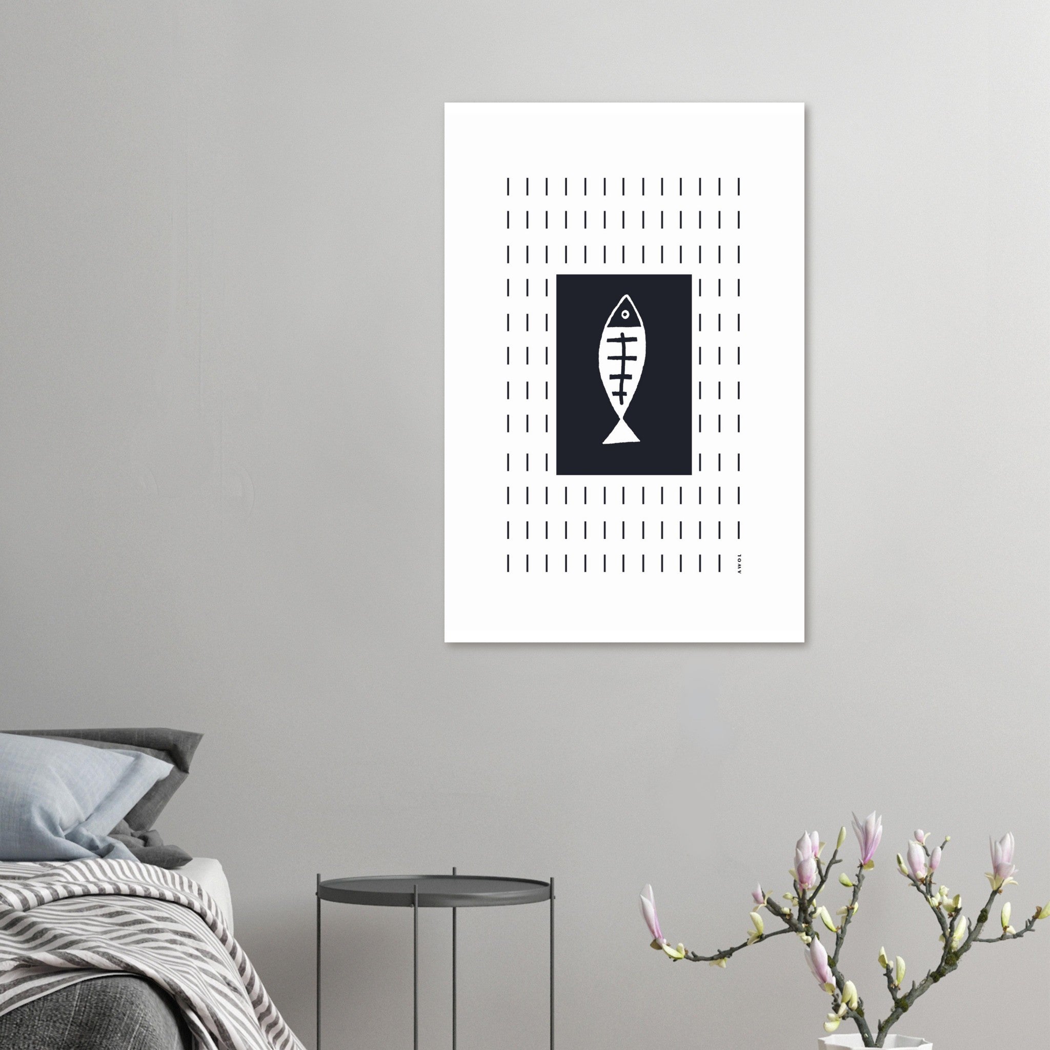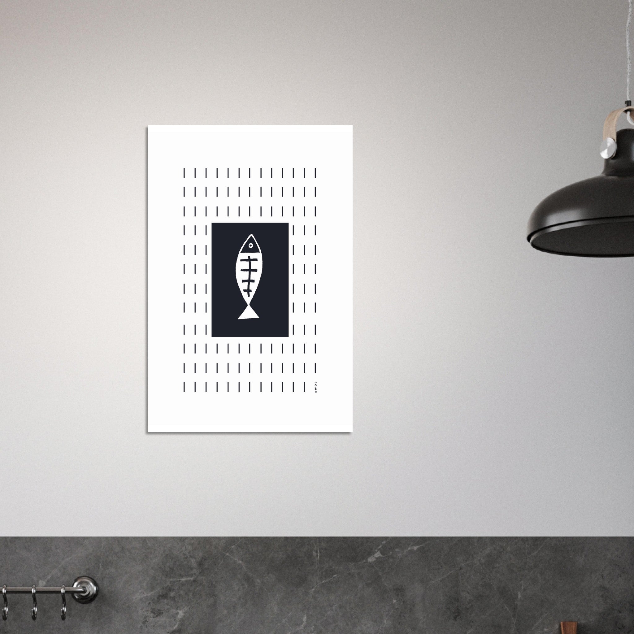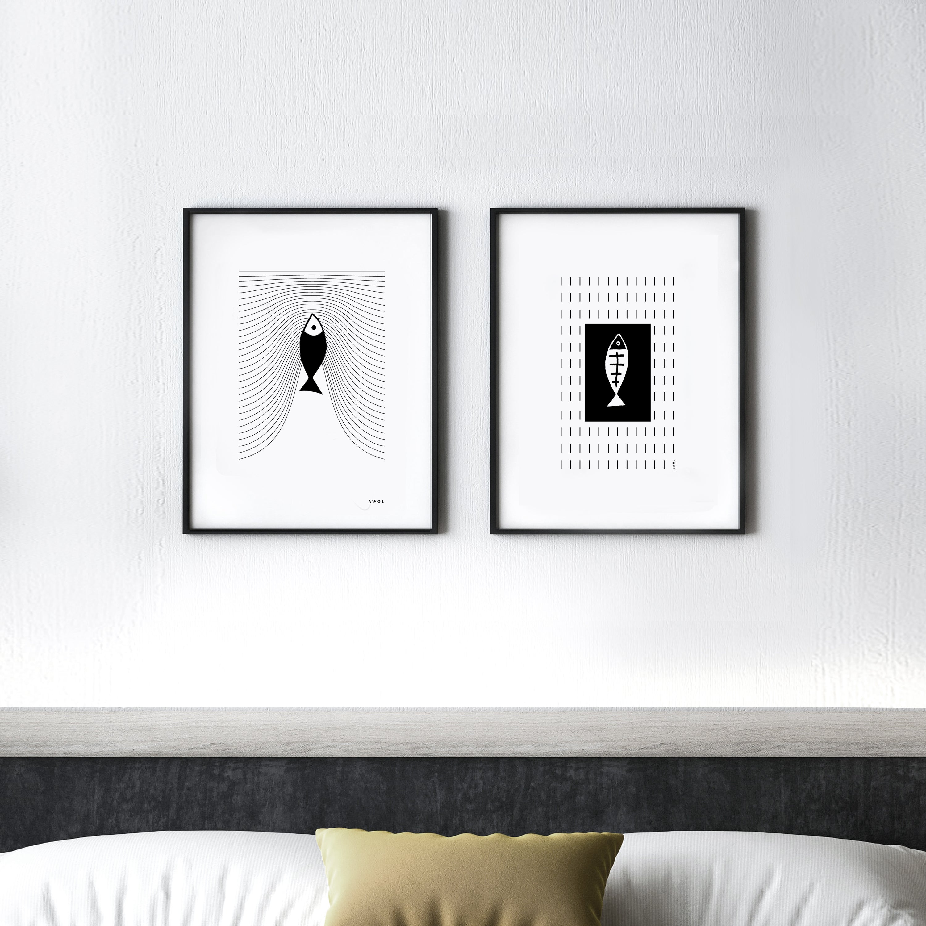 Conveying Scandinavian simplicity, this black and white fish poster is a minimalist wall art print inspired by Nordic design, featuring a hand-drawn, modern fish and a graphic line pattern. This modern poster print brings a Scandinavian aesthetic to any wall decor, offering a perfect blend of contemporary art style and minimalist charm. This modern fishing wall poster adds a touch of timeless elegance, and a modern focal point to your home decor. The mix of hand-drawn fish and abstract black and white pattern creates a cool wall art aesthetic and a bold contemporary edge, and can be combined with a mix of the other fish posters in this 3 piece abstract art series.