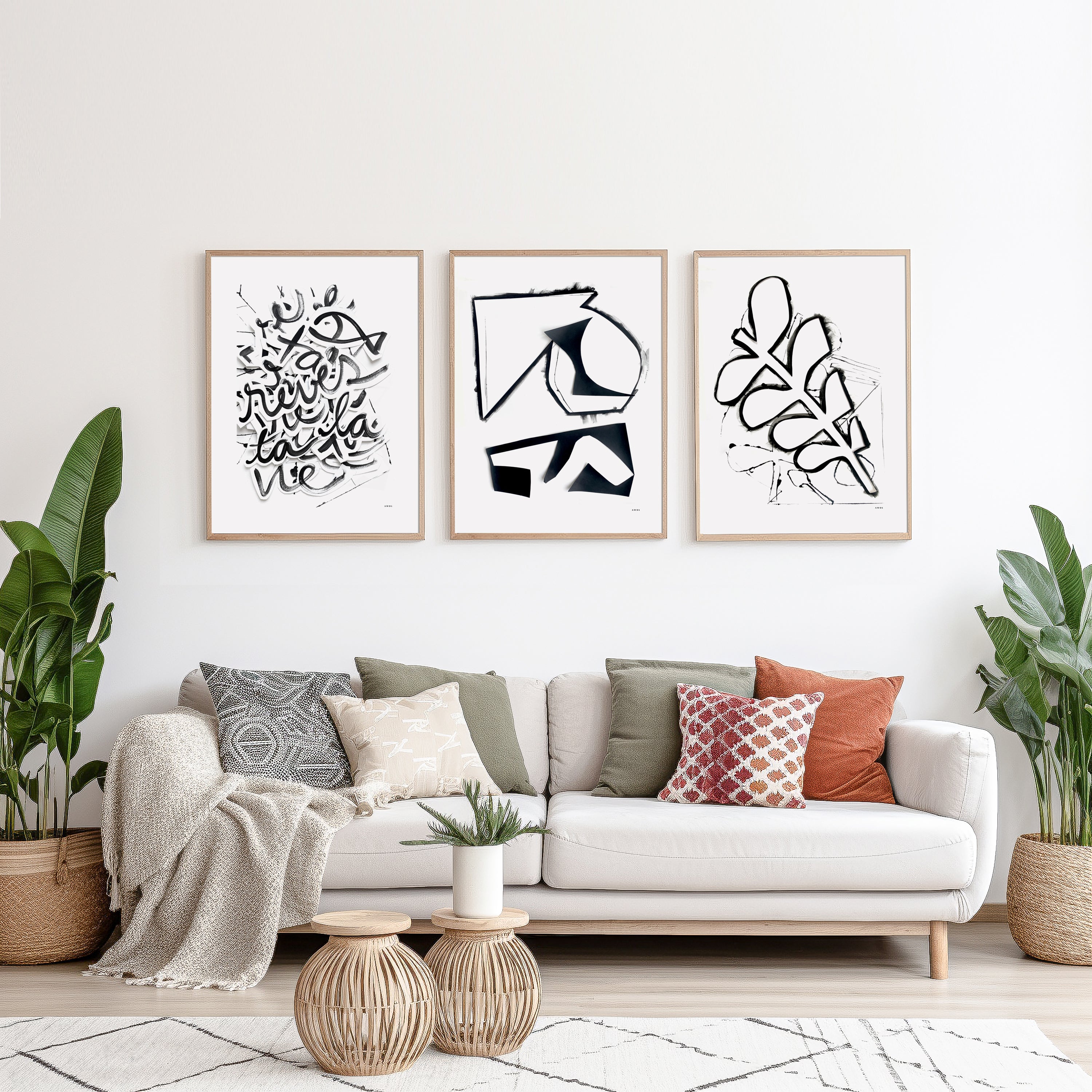 This large canvas artwork with bold black and white shapes is an abstract wall art print on canvas that blends modernity and nature. At the heart of this abstract landscape artwork lies inspiration drawn from the coastal walks and hikes I encountered on my travel explorations, meandering along seaside cliffs, tracing the rugged coastlines and rock formations of Spain, the South of France, Italy, Sicily, Corsica and the Mediterranean shorelines. This minimalist canvas art print reflects the organic shapes and meandering lines of these coastal vistas, where around every corner a new incredible view manifests, mirroring the intricate formations of ancient rocks shaped by the relentless forces of nature. The intricate layers of texture and depth of this large abstract wall art add an extra dimension to your wall decor, inviting touch as well as sight. It can be combined with other abstract artworks in this black and white canvas art series, adding a minimalist art aesthetic to any home, office or wall decor.