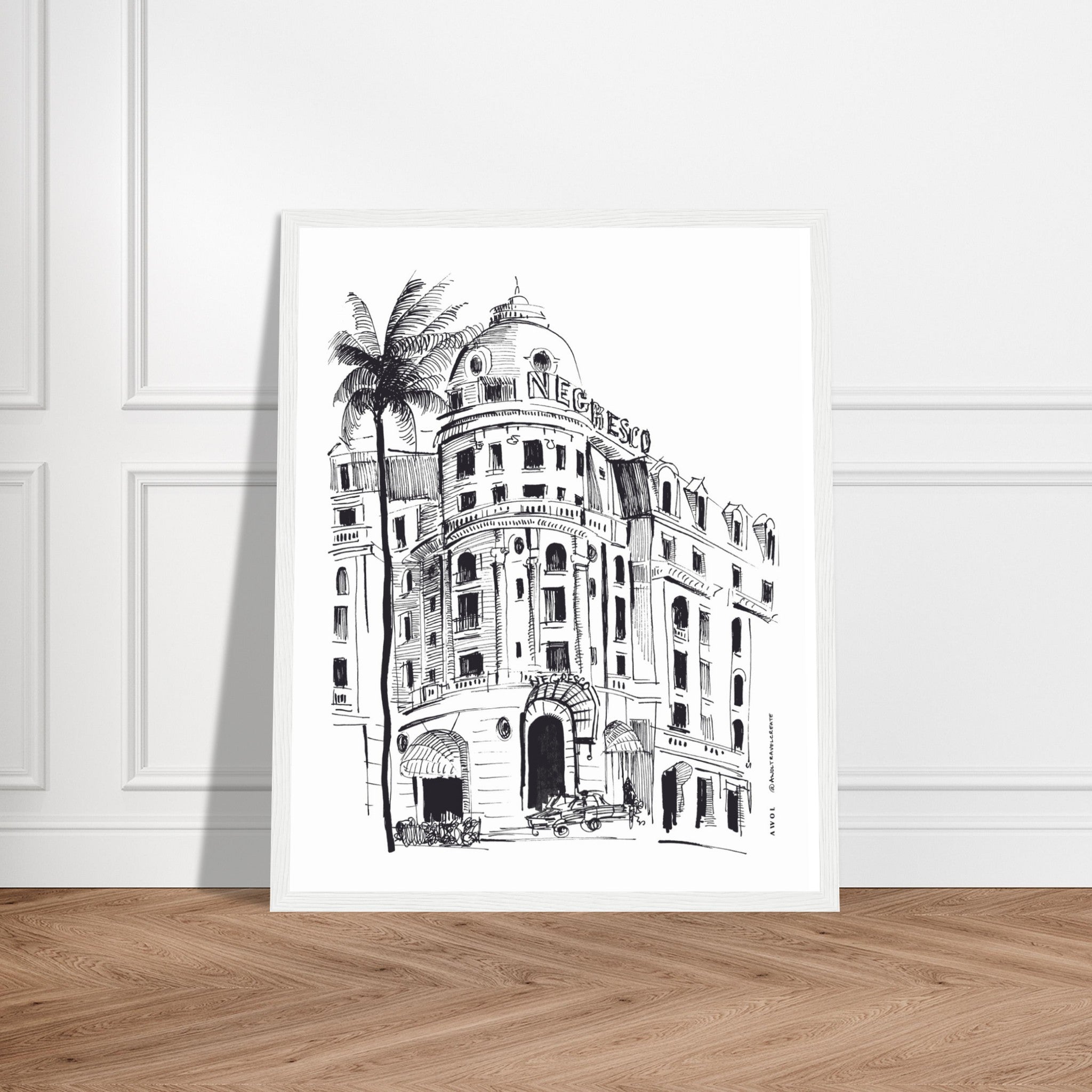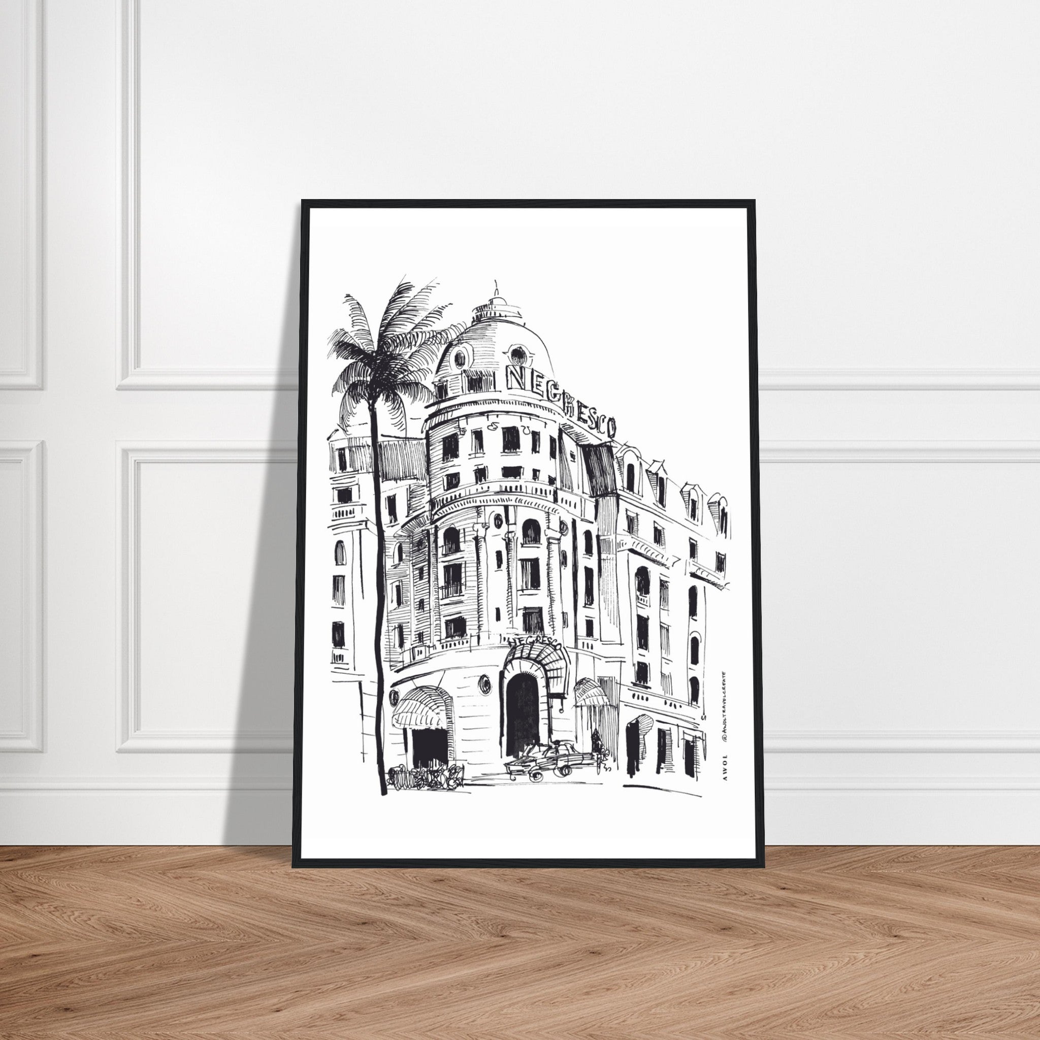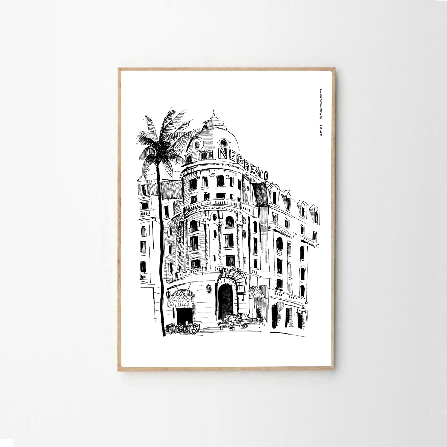 This black and white, large framed wall art is a wall decor artwork of one world’s most elegant and classy Belle Époque buildings, the Negresco Hotel. This monochrome wall art of Nice, France is a city illustration drawn in a sketchy, modern style, with gestural lines and intricate architectural details. This French Riviera travel art print depicts a Côte d’Azur landmark building overlooking the famous Promenade des Anglais as tall palm trees sway in the wind and luxurious cars drive by. This city art print encapsulates luxury, beauty, relaxation, and the timeless elegance of the stylish Côte d’Azur. This black and white artwork is a timeless addition to your home decor, wall art gallery, travel souvenirs, and a unique gift for France lovers and travellers, bringing beautiful vacation vibes from the South of France to your wall decor. The heavy weight, premium matte paper finish of this travel poster print has a natural, smooth uncoated finish that feels luxurious to the touch and ensures that each nuanced detail is preserved with exceptional clarity, making it durable and long-lasting.
