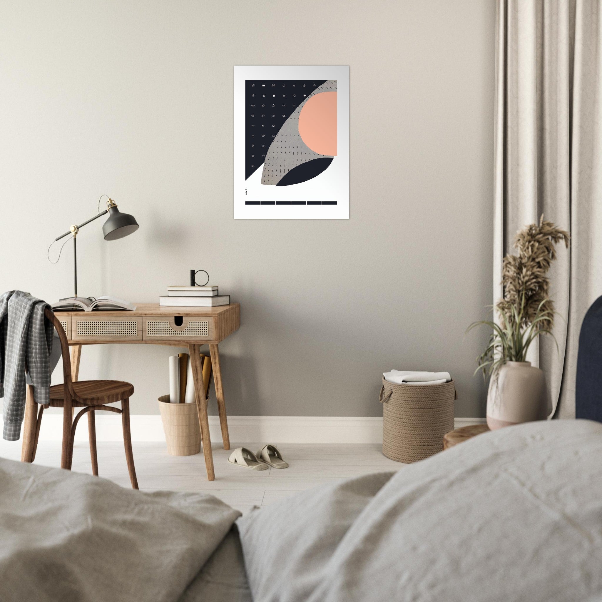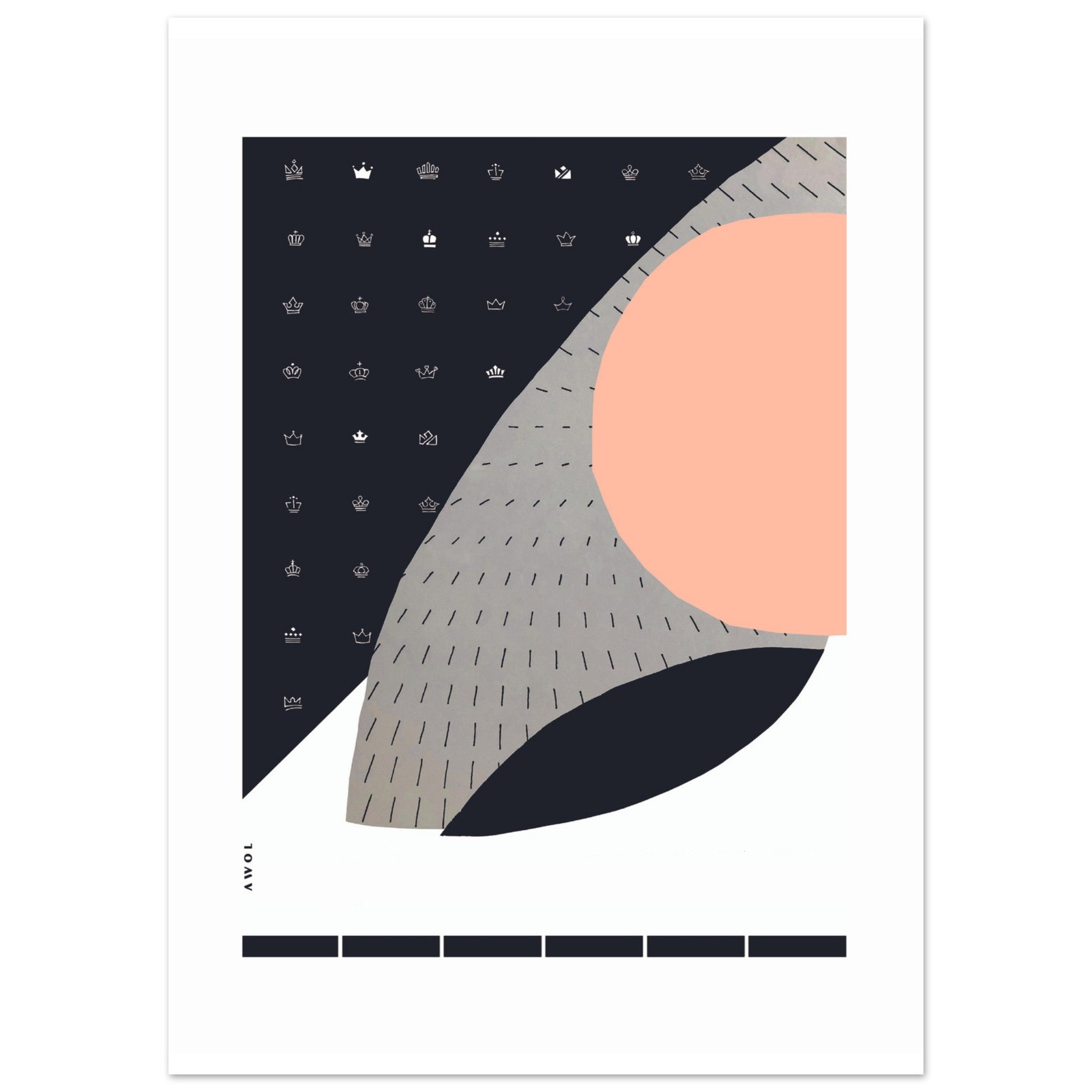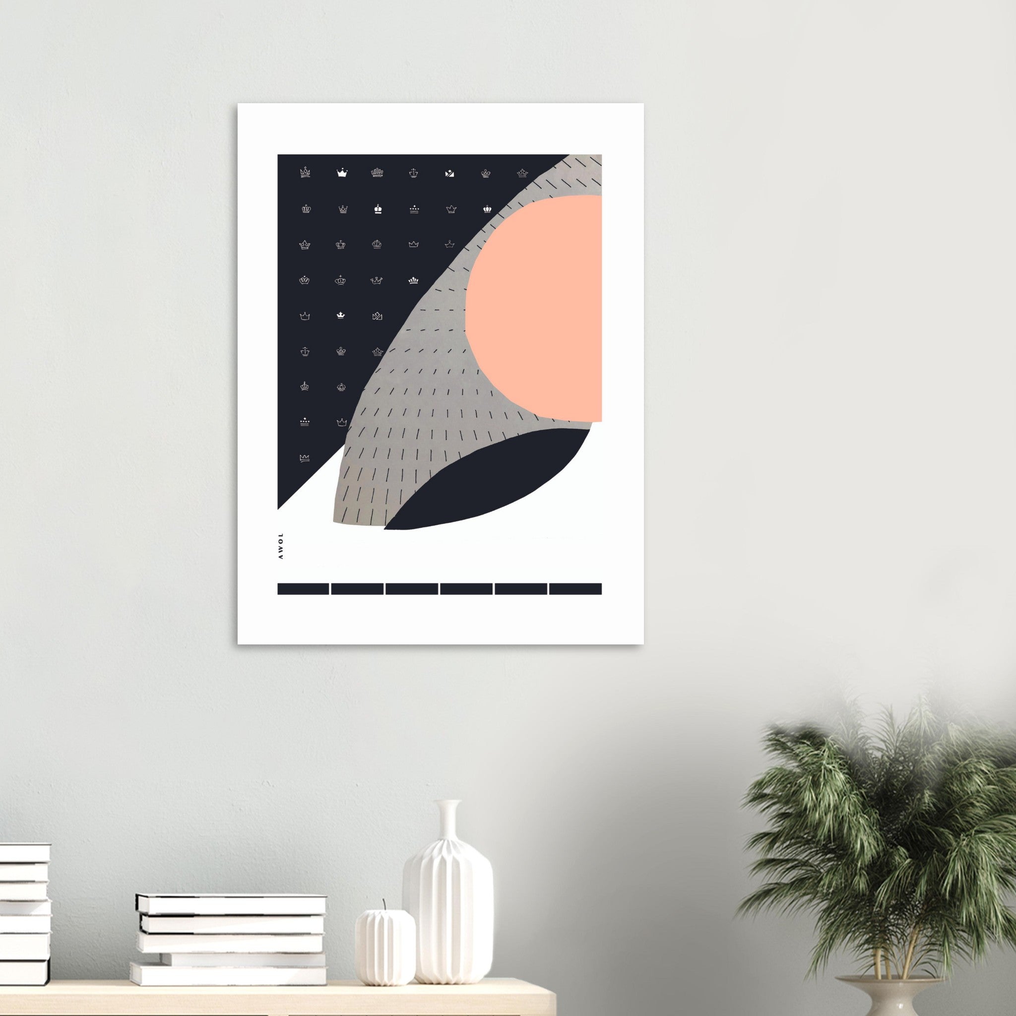 This large abstract wall art print on aluminum is a Scandinavian art print in black, white and grey neutral colours with a modern collage made of organic shapes, clean graphic lines, modern crown illustrations a minimalist aesthetic . This minimalist home decor print is a Nordic artwork printed on aluminum and ready to hang in your living room, bedroom, kitchen or office wall decor. This Scandinavian wall art has a contemporary art style and was created by hand using collage and mixed media. This modern abstract wall art art is a homage to Danish design, a Nordic aesthetic, and a cool art print for any home decor or unique gift for lovers of Scandinavian design.