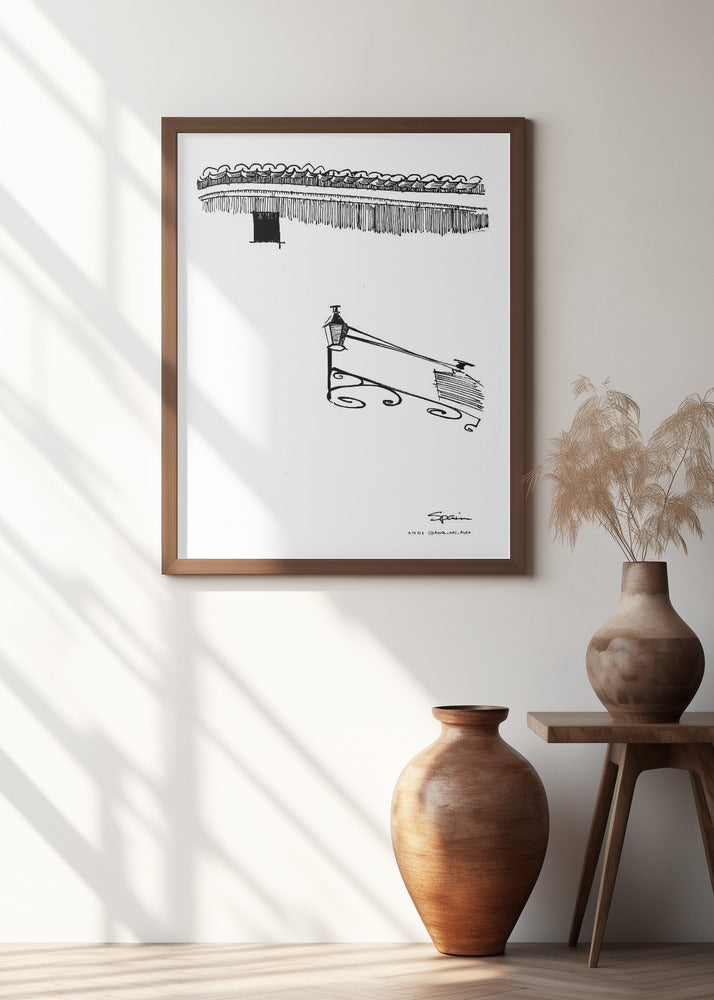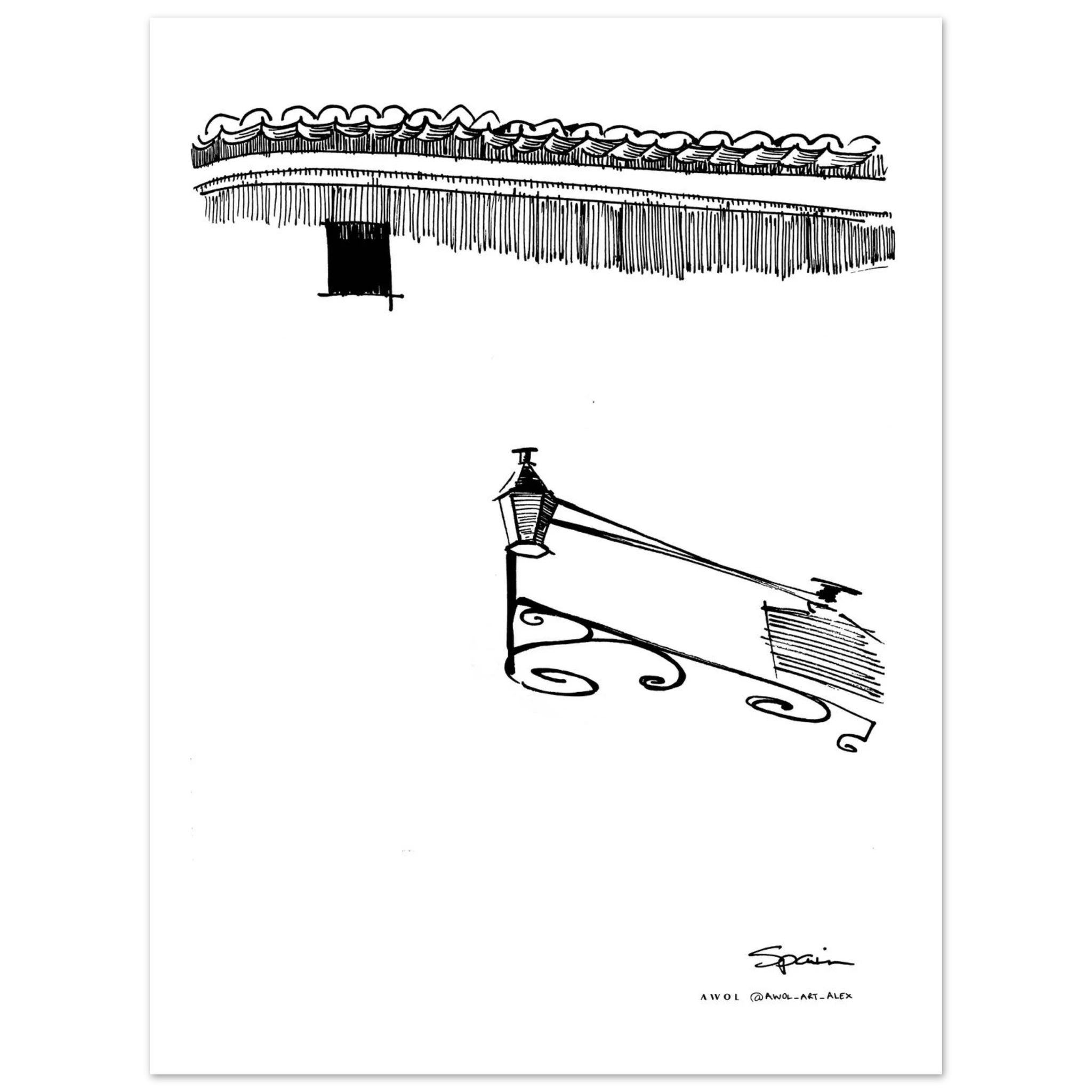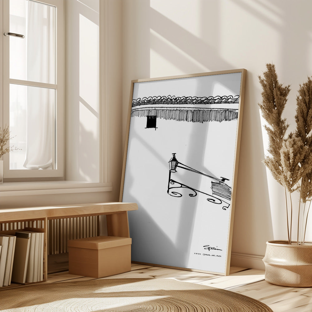This black and white Spain wall art print captures the charm of a traditional Spanish streetlamp casting strong shadows on a sunlit building. Inspired by the beauty of Andalusian architecture in Southern Spain, this minimalist travel sketch evokes the warmth of siesta time and the relaxed atmosphere of a European getaway. This evocative streetlamp print captures the essence of Spain, where sunlight and shadows create a striking visual story – and you can fill in the blanks. With its strong contrasts and graphic, sketchy minimalist art style, this Spain poster print brings a sense of nostalgia and adventure to any wall décor, adding a touch of timeless and elegant European sophistication. A Spain travel souvenir for Europe lovers, this Spanish art print adds a sophisticated yet understated touch to modern, minimalist, or Mediterranean-inspired interiors. Whether you’re looking for unique home decor, monochrome art, a travel-inspired gift, or a way to bring Spanish charm into your home, this print is a unique, timeless addition to any art collection. Available in multiple sizes, making it easy to find the perfect fit for your space. Perfect for those who appreciate travel, Spanish culture, and the beauty of minimalist design. This artwork complements modern interiors, adding a touch of European charm to any space. Art collectors looking for a hand drawn urban drawing with an elegant twist will appreciate its strong contrasts and timeless appeal. Available in multiple sizes, making it easy to find the perfect fit for your wall decor.