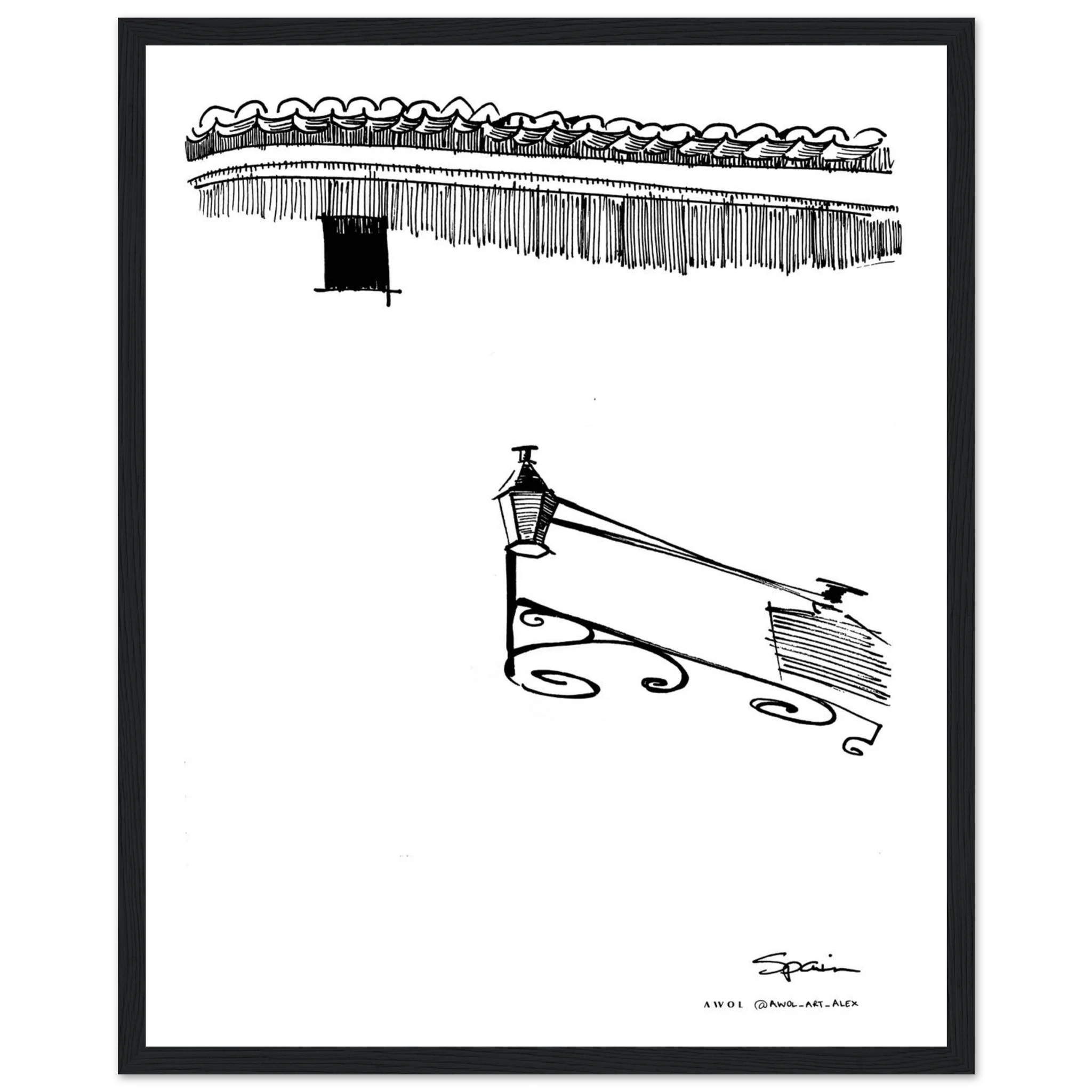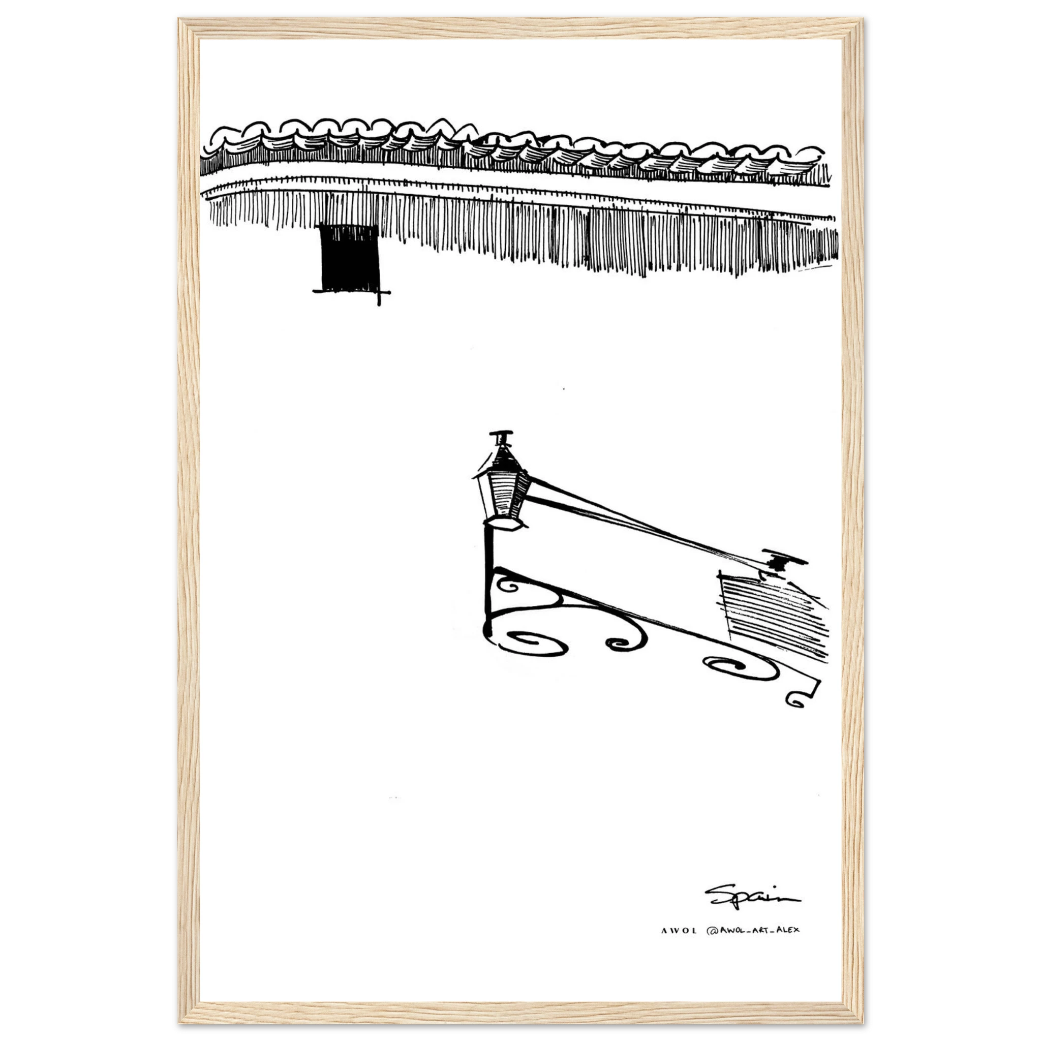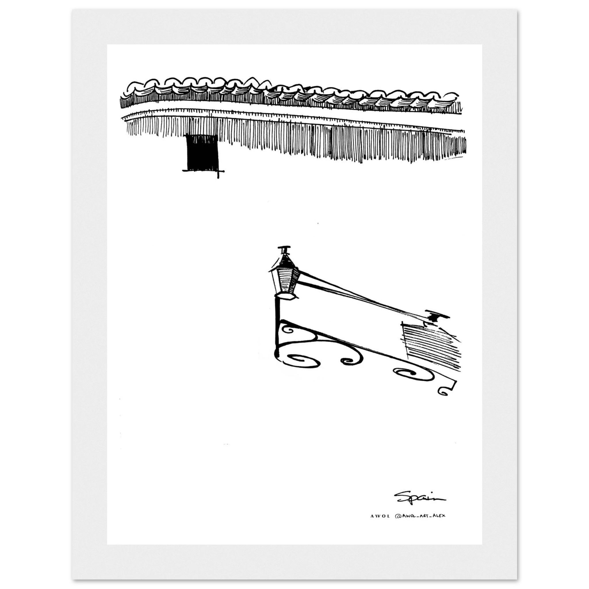 This black and white Spain framed art print captures the charm of a traditional Spanish streetlamp casting strong shadows on a sunlit building. Inspired by the beauty of Andalusian architecture in Southern Spain, this minimalist travel sketch evokes the warmth of siesta time and the relaxed atmosphere of a European getaway. This evocative streetlamp print captures the essence of Spain, where sunlight and shadows create a striking visual story – and you can fill in the blanks. With its strong contrasts and graphic, sketchy minimalist art style, this ready-to-hang wall art brings a sense of nostalgia and adventure to any wall décor, adding a touch of timeless and elegant European sophistication. A Spain travel souvenir for Europe lovers, this Spanish framed art print adds a sophisticated yet understated touch to modern, minimalist, or Mediterranean-inspired interiors. Whether you’re looking for unique home decor, monochrome art, a travel-inspired gift, or a way to bring Spanish charm into your home, this print is a unique, timeless addition to any art collection. Available in multiple sizes, making it easy to find the perfect fit for your space. Perfect for those who appreciate travel, Spanish culture, and the beauty of minimalist yet traditional European design. This artwork complements modern interiors, adding a touch of European charm to any space. Art collectors looking for a hand-drawn urban drawing with an elegant twist will appreciate its strong contrasts and timeless appeal.
