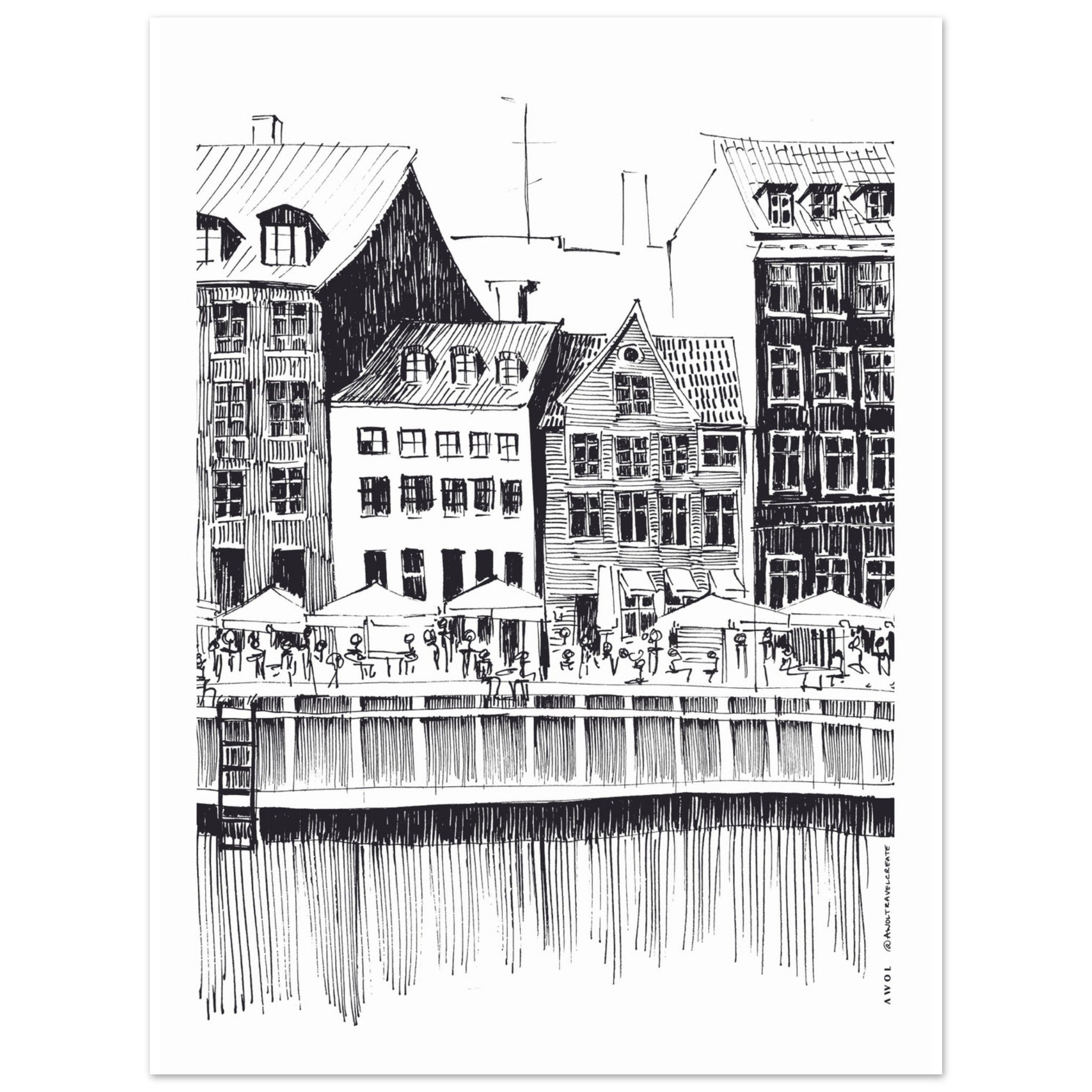 This black and white Venice city drawing art print captures the romantic beauty and unique vibe of this beautiful Italian city: gondolas, palazzos and basilicas on the Grand Canal are hand drawn in a minimalist, monochrome wall art print. This Italy scenery artwork depicts a gondola swaying peacefully in front of classic Venitian palazzos, while in the background boats drive by, leaving dynamic motion waves in their wake. On the right side of the grand canal, on the Dorsoduro sestieri (one of six island districts making up this city on water), we see the grandiose rounded roofs of the Basilica di Santa Maria della Salute. The clean lines, sketchy style, dynamism and contemporary art aesthetic of this Venice city poster is not only a travel art print, but also a romantic Italy travel souvenir, a unique Italian wall art decor and a cool and thoughtful gift idea for Italy lovers and travellers. This Venice travel poster is an artful Italy trip poster print that you can hang on your wall decor, keeping a beautiful Italy travel print close by to remember your Venice vacation and your travels to Italy, making you smile every day and savouring a sense of la dolce vita.