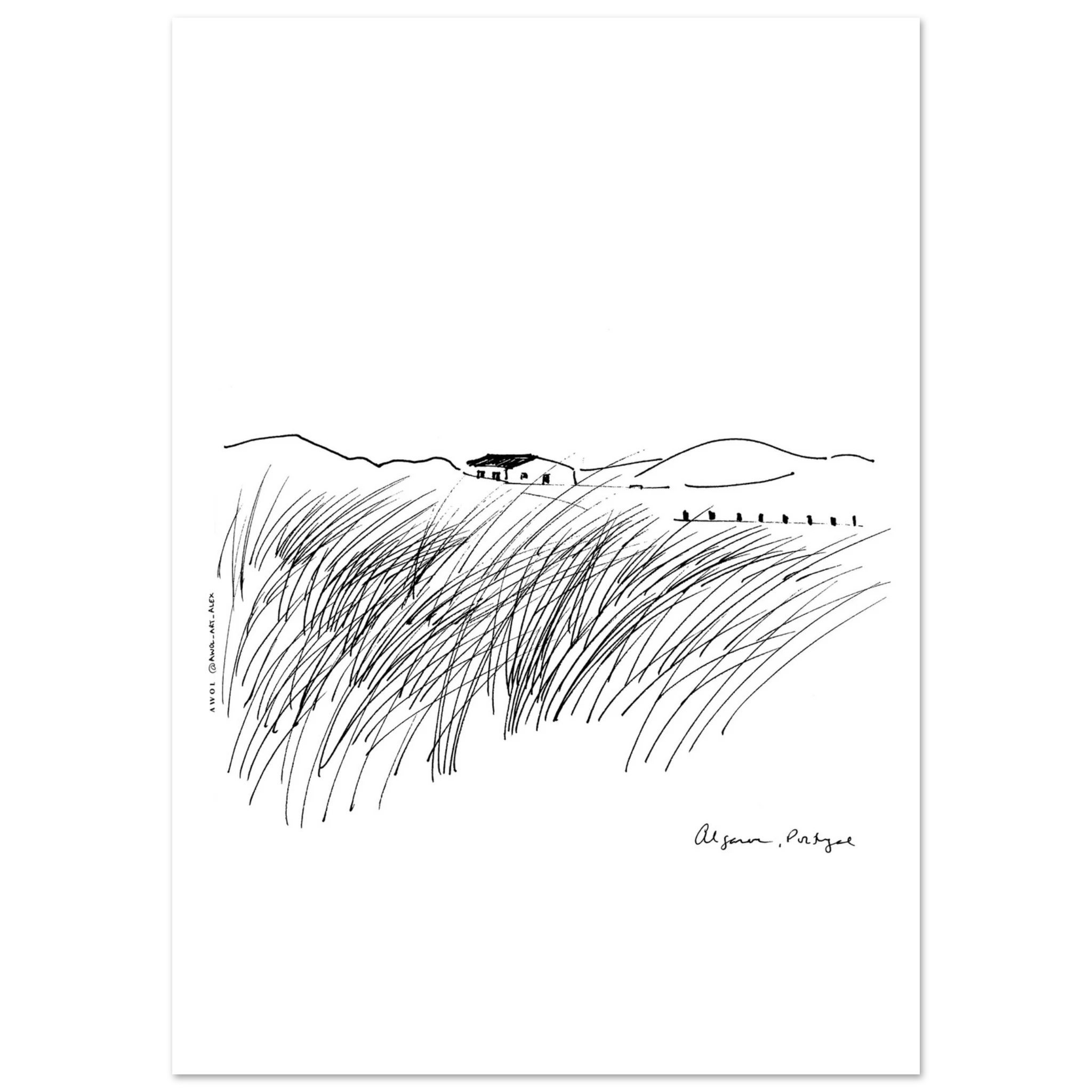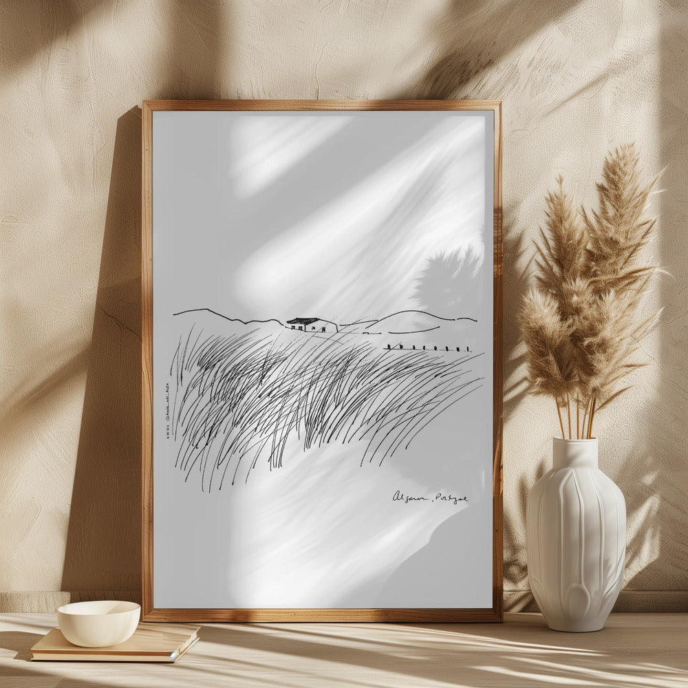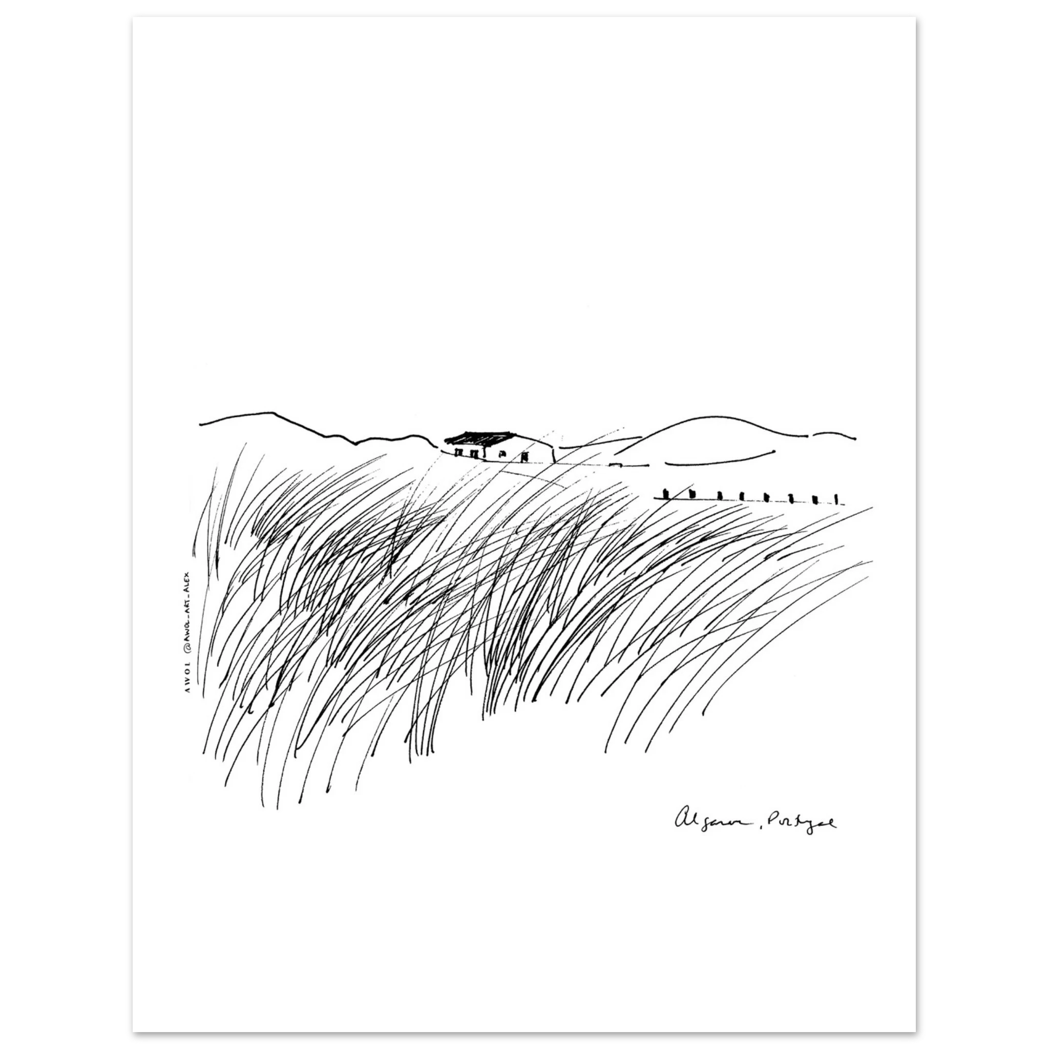 This minimalist black and white Portugal travel art print depicts the natural coastlines and wild beauty of Portugal’s Algarve region in a sketchy, gestural drawing style inspired by travelling along the Atlantic Ocean coast: a beautiful Portugese natural landscape paradise destination for surfers, yogis, nature and beach lovers. Featuring a modern monochrome landscape drawing, this artwork captures the movement of wild coastal grasses swaying in the strong ocean winds, with the rhythmic force of the sea tides in the background. In this sketchy yet detailed Portugal travel poster, the Algarve’s dramatic seaside scenery comes to life in this pen and ink illustration, evoking the region’s wild spirit and serene energy. Perfect for nature lovers, Portugal lovers, explorers and adventurers who find peace in nature’s raw elements, this Portugese travel print blends effortlessly into modern, minimalist, or bohemian interior decor. Whether you’re drawn to the Algarve’s rugged charm, the meditative pull of the ocean, or the simplicity of line art, this wall decor piece offers a timeless reminder of nature’s power and tranquility. Ideal for home, office, or yoga spaces, it’s a must-have for lovers of the sea and the great outdoors.